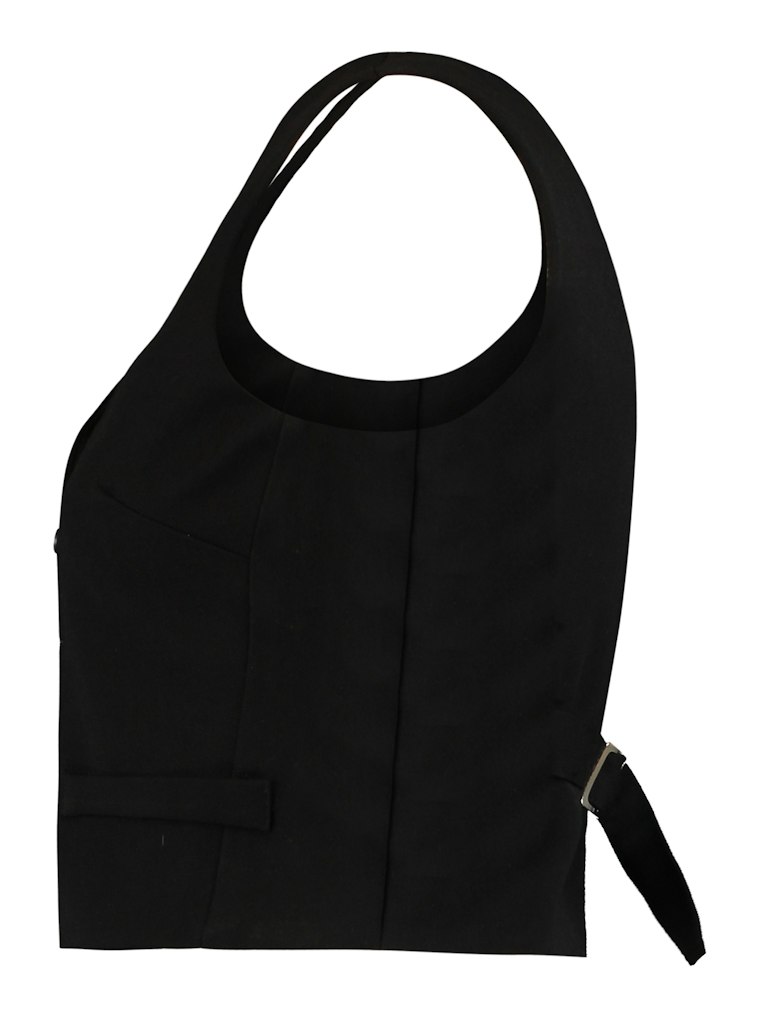 Einreihige Weste mit zwei Leistentaschen mit V-Ausschnitt, Knöpfen vorne.