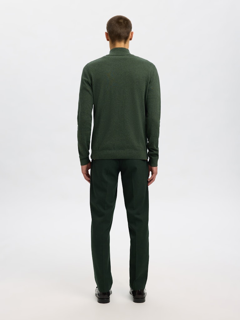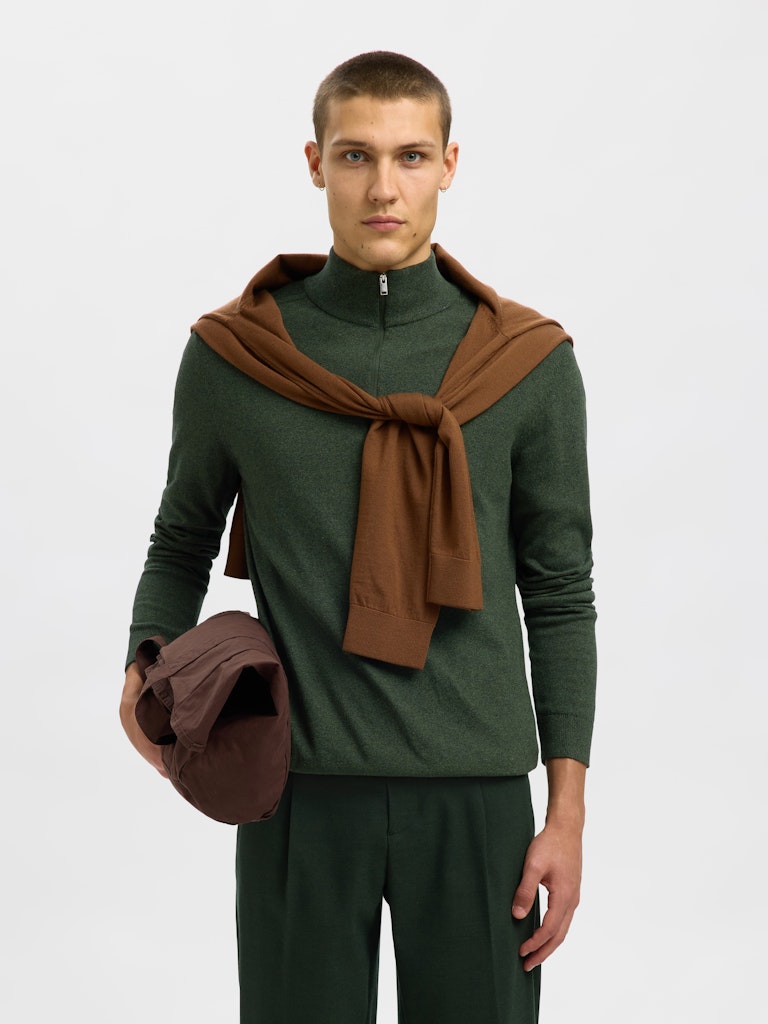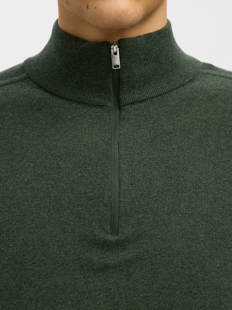 Jetzt heißt es zurück zu den Basics mit diesem schlichten und dennoch eleganten Strickpullover. Er hat einen hohen Kragen mit Halbreißverschluss, den du geschlossen oder offen tragen kannst, sowie fein gerippte Säume und Nahtdetails an den Schultern. Er besteht auch zu 100% aus Baumwolle, was ihn besonders weich und atmungsaktiv macht. Wir würden ihn im Büro mit einem karierten Hemd, einer Chinohose und Loafern kombinieren.- Hoher Kragen- Halbreißverschluss- Schulternähte im Stil von Schulterriegeln- Lange Ärmel- Fein gerippte Säume- Regular Fit