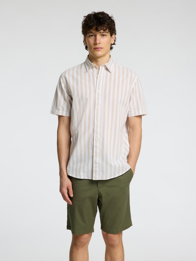 Mit einem Leinenhemd kannst du nichts falsch machen. Diese kurzärmelige Variante enthält Baumwolle und Leinen, was es besonders leicht und atmungsaktiv macht. Ob einfarbig oder mit Print, dieses Hemd ist ein absolutes Must-have für den Frühling. Kombiniere es mit Chinos oder einer Jeans.- Hemdkragen- Geknöpfter Kragen- Kurze Ärmel- Gerundeter Saum- Enthält Leinen- Regular FitENTHÄLT RECYCELTE BAUMWOLLEDas Hauptmaterial dieses Produkts besteht zu mindestens 20% aus recycelter Baumwolle. Recycelte Baumwolle schont die natürlichen Ressourcen und reduziert Textilabfälle.