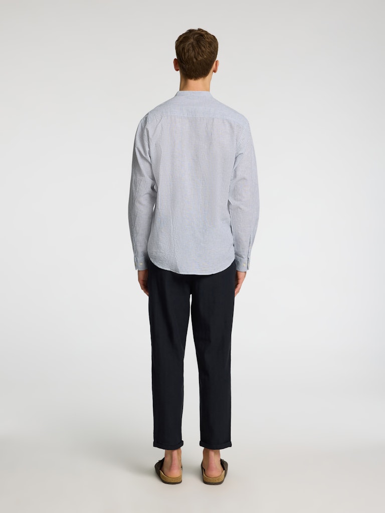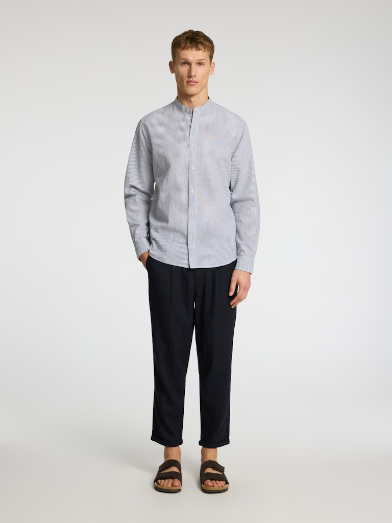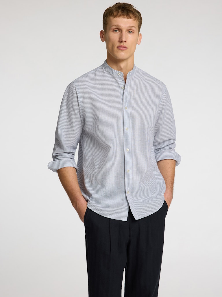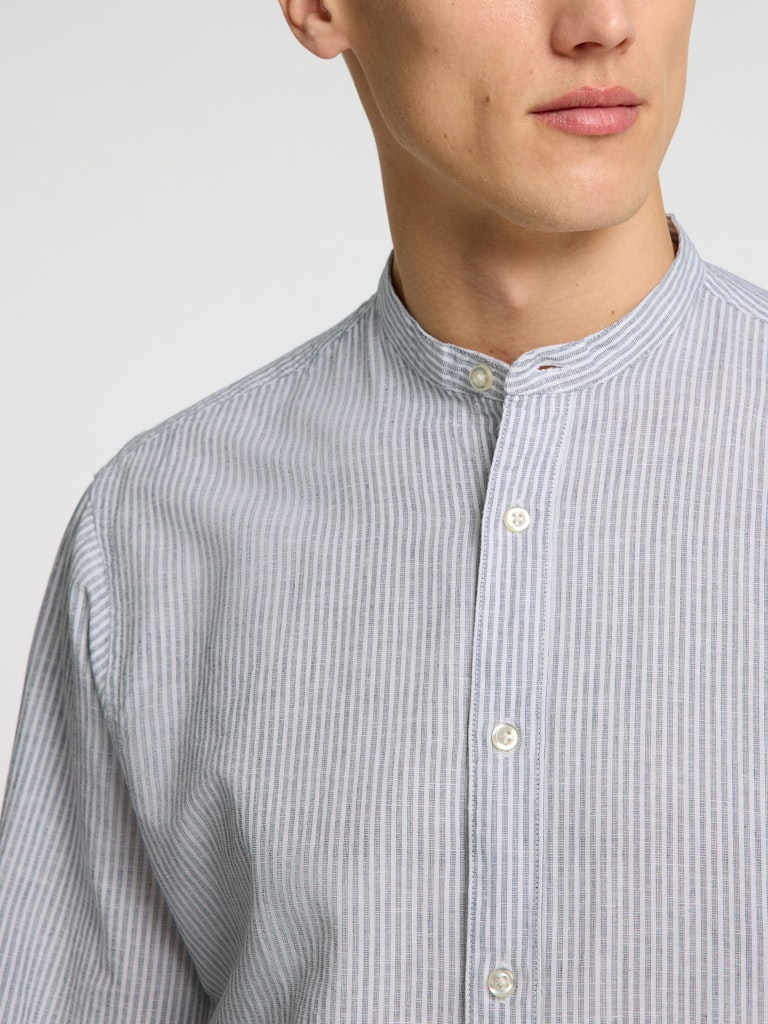 Dieses Hemd aus Leinengemisch hat genau die Eigenschaften, nach denen wir uns bei steigenden Temperaturen sehnen. Es ist ein langärmeliges Sommer-Must-have, das du offen über einem T-Shirt oder mit hochgekrempelten Ärmeln tragen kannst, um den Beach-Look noch zu unterstreichen. Dazu passen Chinoshorts und Ledersandalen.- Stehkragen- Geknöpfte Vorderseite- Lange Ärmel- Gerundeter Saum- Enthält Baumwolle und Leinen- Regular FitENTHÄLT RECYCELTE BAUMWOLLEDas Hauptmaterial dieses Produkts besteht zu mindestens 20% aus recycelter Baumwolle. Recycelte Baumwolle schont die natürlichen Ressourcen und reduziert Textilabfälle.