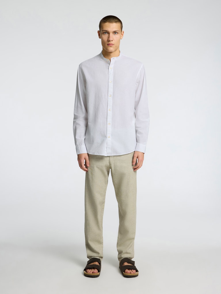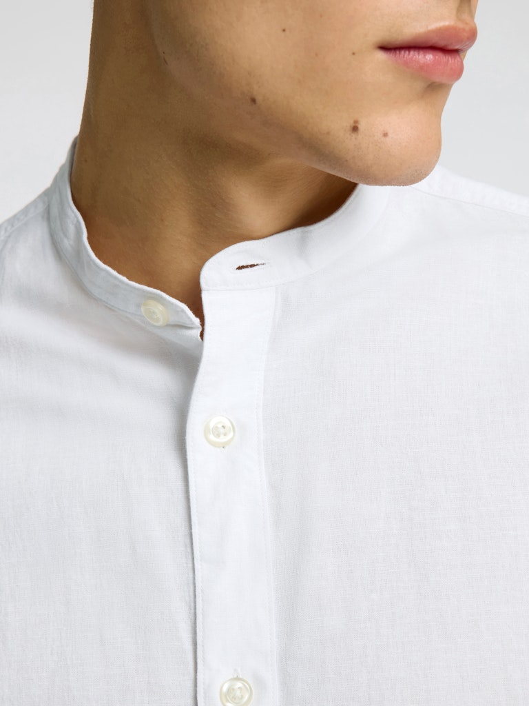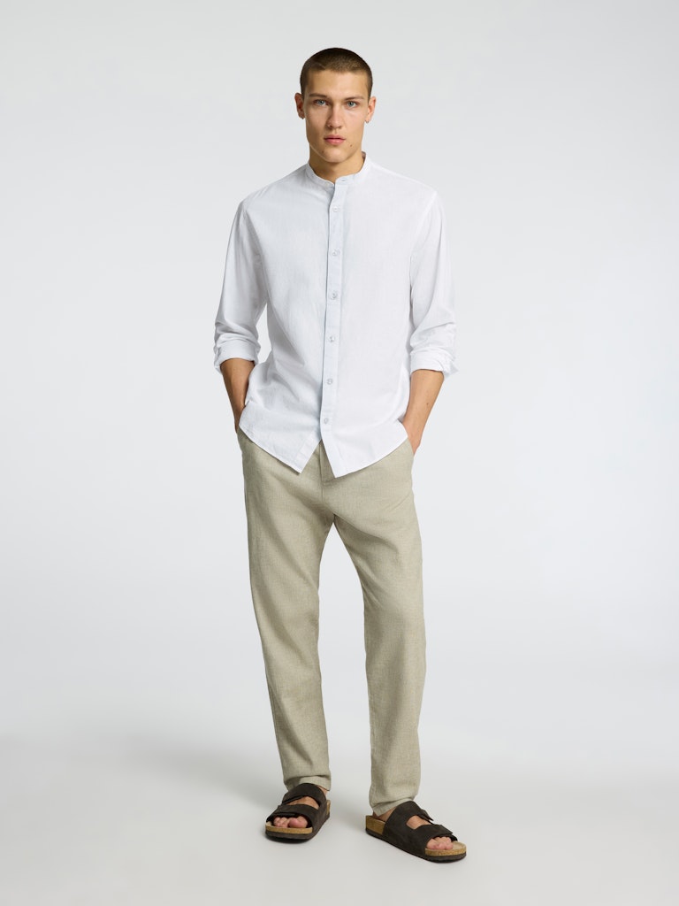 Dieses Hemd aus Leinengemisch hat genau die Eigenschaften, nach denen wir uns bei steigenden Temperaturen sehnen. Es ist ein langärmeliges Sommer-Must-have, das du offen über einem T-Shirt oder mit hochgekrempelten Ärmeln tragen kannst, um den Beach-Look noch zu unterstreichen. Dazu passen Chinoshorts und Ledersandalen.- Stehkragen- Geknöpfte Vorderseite- Lange Ärmel- Gerundeter Saum- Enthält Baumwolle und Leinen- Regular FitENTHÄLT RECYCELTE BAUMWOLLEDas Hauptmaterial dieses Produkts besteht zu mindestens 20% aus recycelter Baumwolle. Recycelte Baumwolle schont die natürlichen Ressourcen und reduziert Textilabfälle.