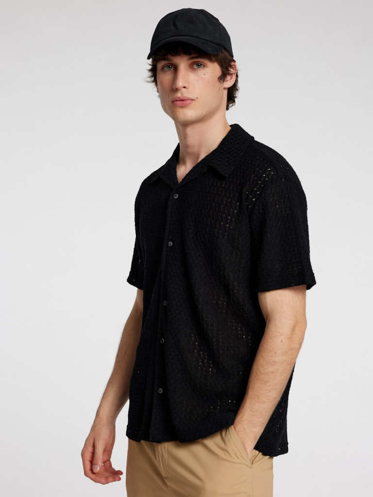 Dieses gestrickte Jacquardhemd bringt mehr Textur in deinen Look. Es hat einen lässigen Cuban Collar und ist ideal als Overshirt in Kombination mit T-Shirt, Jeans und Wildledersandalen.- Cuban Collar- Geknöpfte Vorderseite- Kurze Ärmel- Gestricktes Jacquardmuster- Relaxed FitENTHÄLT BIO-BAUMWOLLEDas Hauptmaterial dieses Produkts besteht zu mindestens 50% aus Bio-Baumwolle. Bio-Baumwolle wird ohne schädliche Chemikalien angebaut. Der Anbau von Bio-Baumwolle schont die natürlichen Ressourcen und schützt die Artenvielfalt.