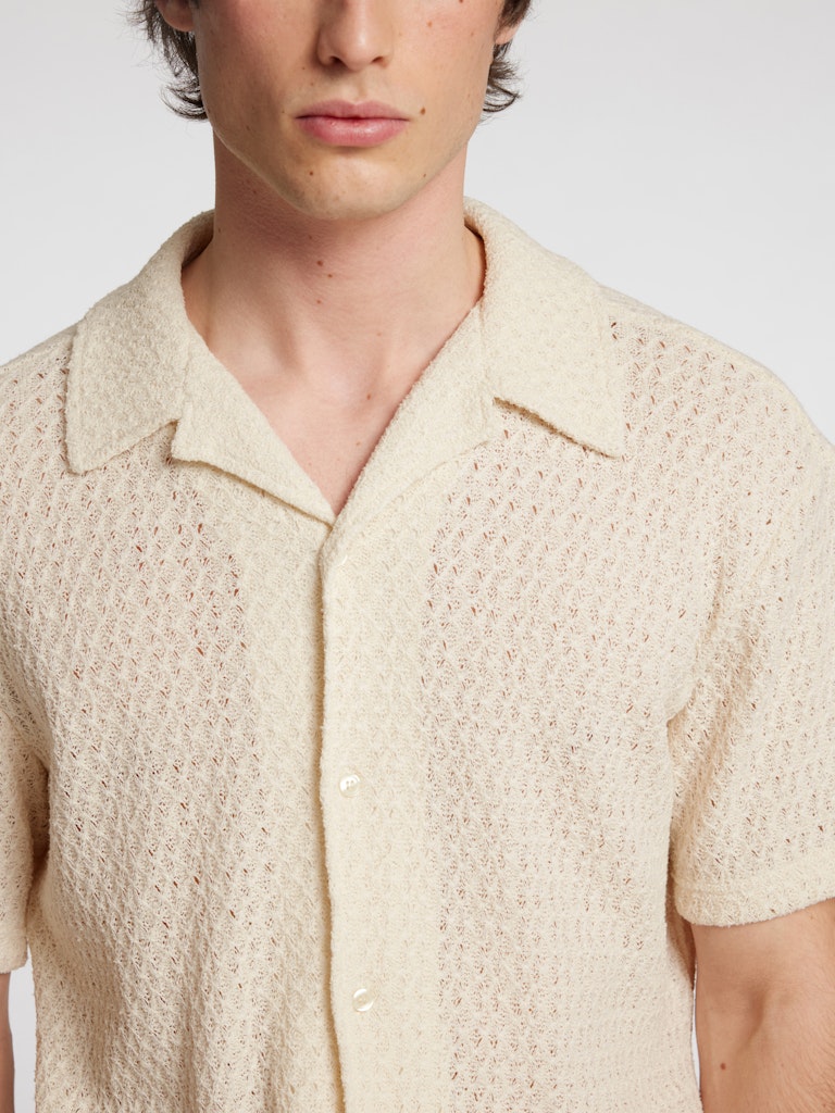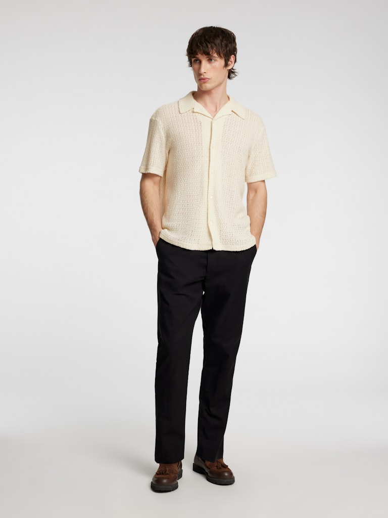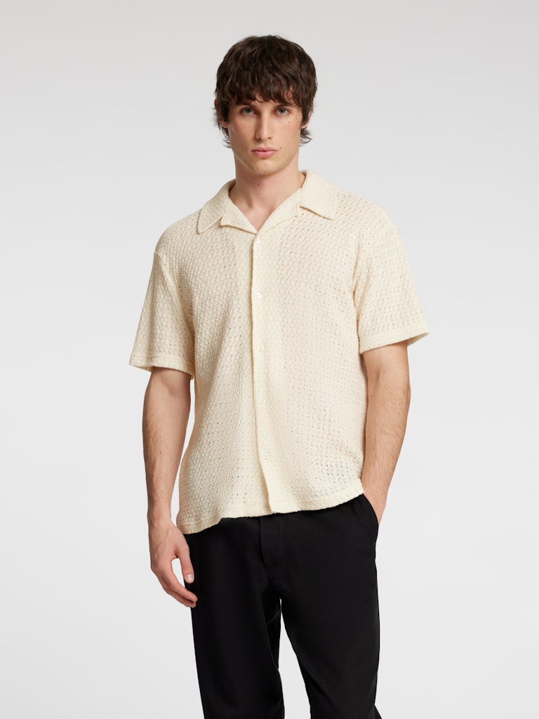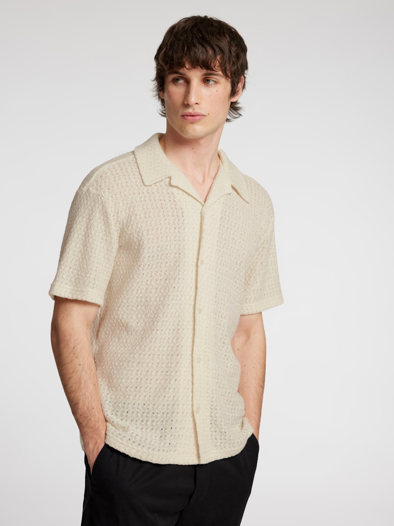 Dieses gestrickte Jacquardhemd bringt mehr Textur in deinen Look. Es hat einen lässigen Cuban Collar und ist ideal als Overshirt in Kombination mit T-Shirt, Jeans und Wildledersandalen.- Cuban Collar- Geknöpfte Vorderseite- Kurze Ärmel- Gestricktes Jacquardmuster- Relaxed FitENTHÄLT BIO-BAUMWOLLEDas Hauptmaterial dieses Produkts besteht zu mindestens 50% aus Bio-Baumwolle. Bio-Baumwolle wird ohne schädliche Chemikalien angebaut. Der Anbau von Bio-Baumwolle schont die natürlichen Ressourcen und schützt die Artenvielfalt.