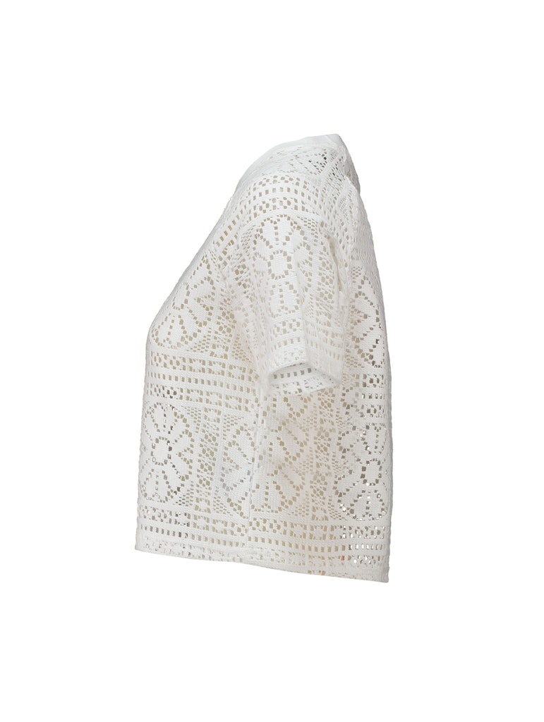Kurzarm Blumenstrickmuster Top, mit einem Rundhalsausschnitt