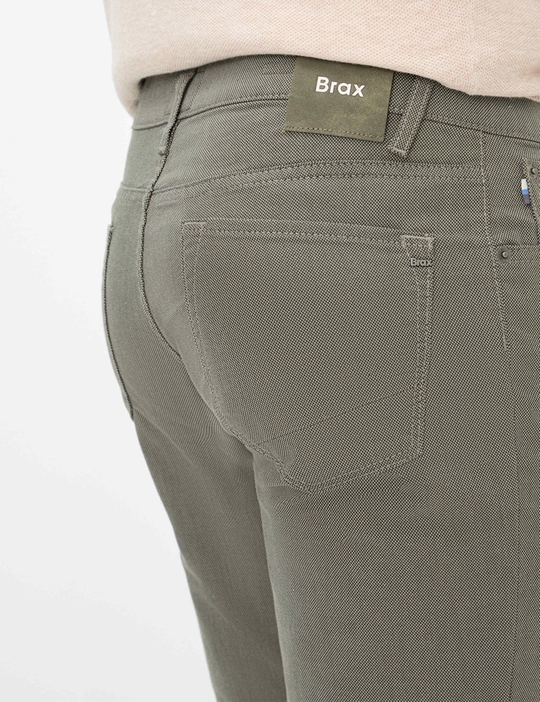 Ein vielseitiges Essential, das Stil und Komfort perfekt vereint: Die Five-Pocket-Hose im Style CHUCK präsentiert sich im Modern Fit mit schlanker Silhouette. Der Reißverschluss und Knopf, aufgesetzte Gesäßtaschen und eine Coinpocket unterstreichen den klassischen Look. Das dezente Minimal-Muster rundet das Design stilvoll ab. Gefertigt aus einem hochwertigen Baumwollmix, verspricht diese Hose exzellenten Tragekomfort durch die natürlichen, atmungsaktiven Eigenschaften der Baumwolle, die Robustheit von Polyamid und die optimale Elastizität von Elasthan für uneingeschränkte Bewegungsfreiheit und perfekte Passform. Ein besonderes Highlight ist die innovative Hi-Flex-Qualität, die der Hose eine außergewöhnliche Dehnbarkeit verleiht und für maximale Flexibilität sowie dauerhafte Formstabilität sorgt, sodass Sie sich den ganzen Tag über rundum wohlfühlen und eine stets makellose Optik genießen.
