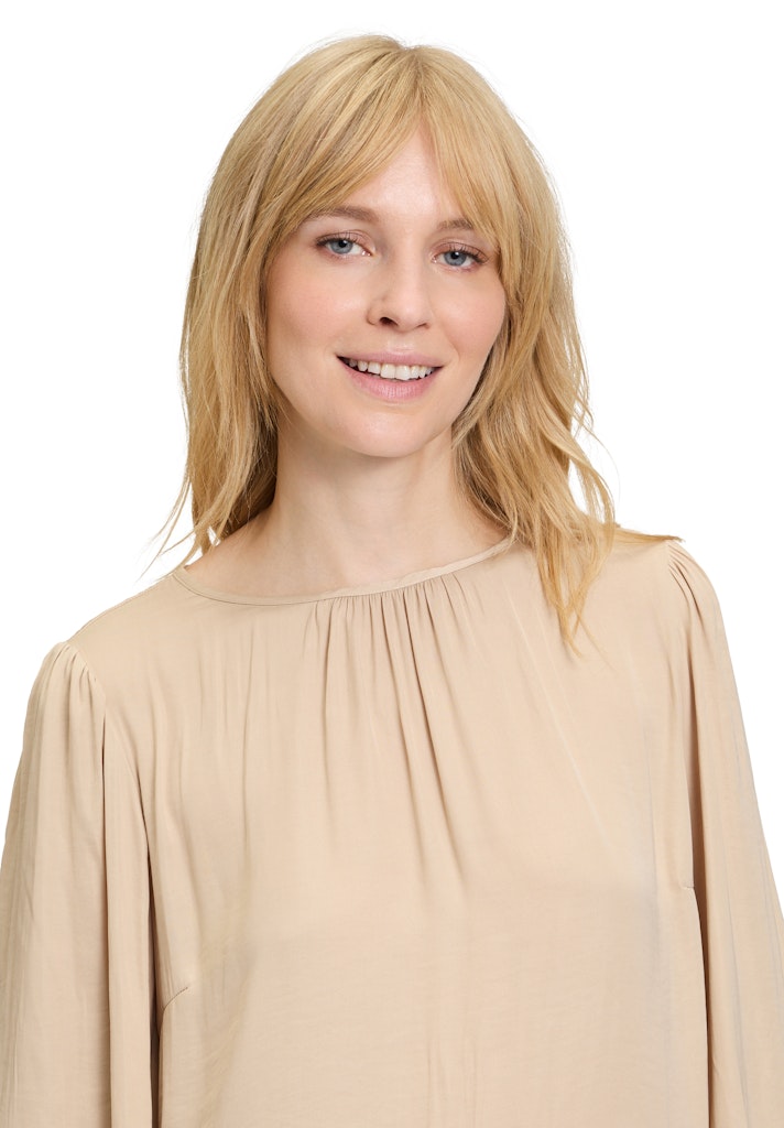 * Ärmel: Langarm, mit Raffung