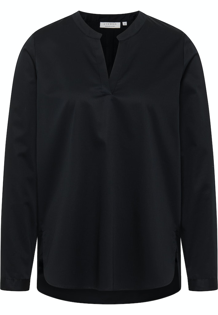 Die moderne Weite im Taillen- und Hüftbereich sorgt für eine lässige Silhouette und einen lockeren Sitz der Bluse.