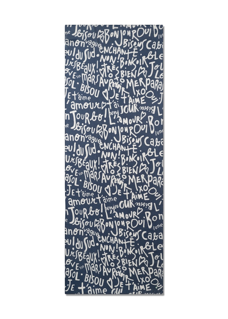 Schal aus feiner Modal-Baumwoll-Mischung mit französischen Schriftzügen