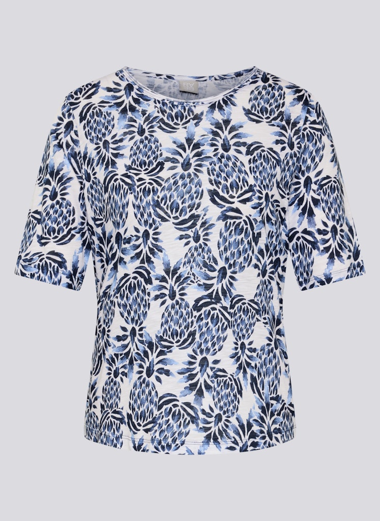Das florale Allover-Muster verleiht dem Shirt eine frische, lebendige Ausstrahlung. Die gerade, bequeme Form fällt locker und eignet sich für vielseitige Kombinationen im Alltag. Ein klassischer Rundhalsausschnitt und kurze Ärmel unterstreichen den unkomplizierten Stil. Die weiche Qualität liegt angenehm auf der Haut. Baumwoll-Viskose-Mix. Florales Allover-Muster. Rundhalsausschnitt. Halbarm. Gerade Passform.