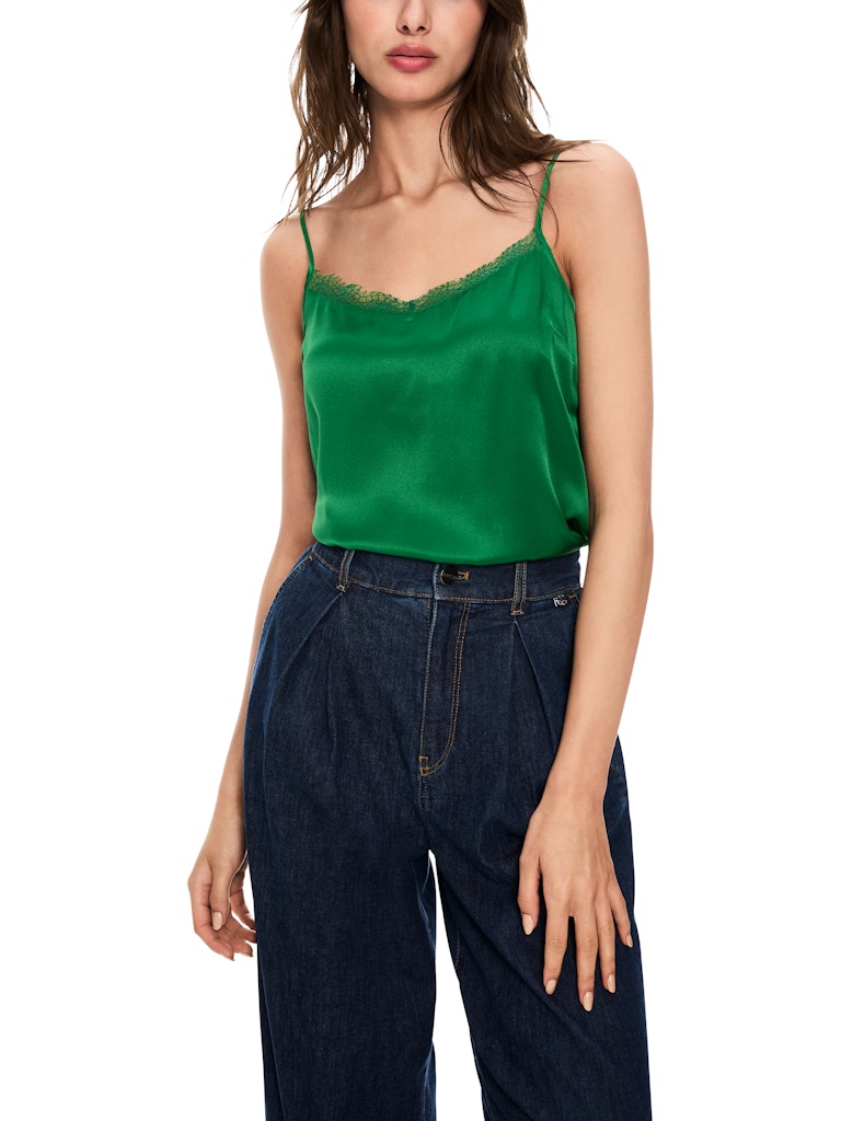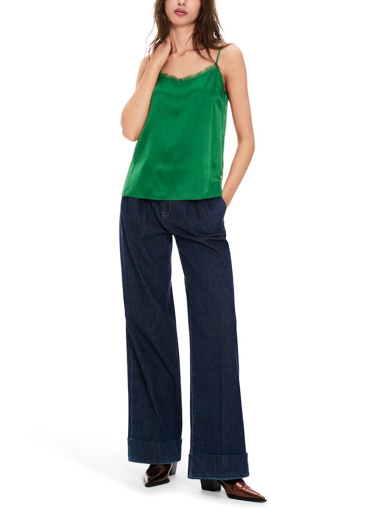 Seiden-Top mit Spitze|Mit seiner edlen Seide schmeichelt dieses zarte Top der Haut. Eyecatcher ist der Spitzeneinsatz am V-Neck. Feine Träger, die individuell verstellbar sind, ergänzen den femininen Stil. Das Top besitzt Brustabnäher und präsentiert eine leichte A-Silhouette.|Leichte A-Silhouette|Verstellbare Träger|Mit Brustabnähern|Hautschmeichelndes Material|Das Model ist 179 cm groß und trägt N3/38.