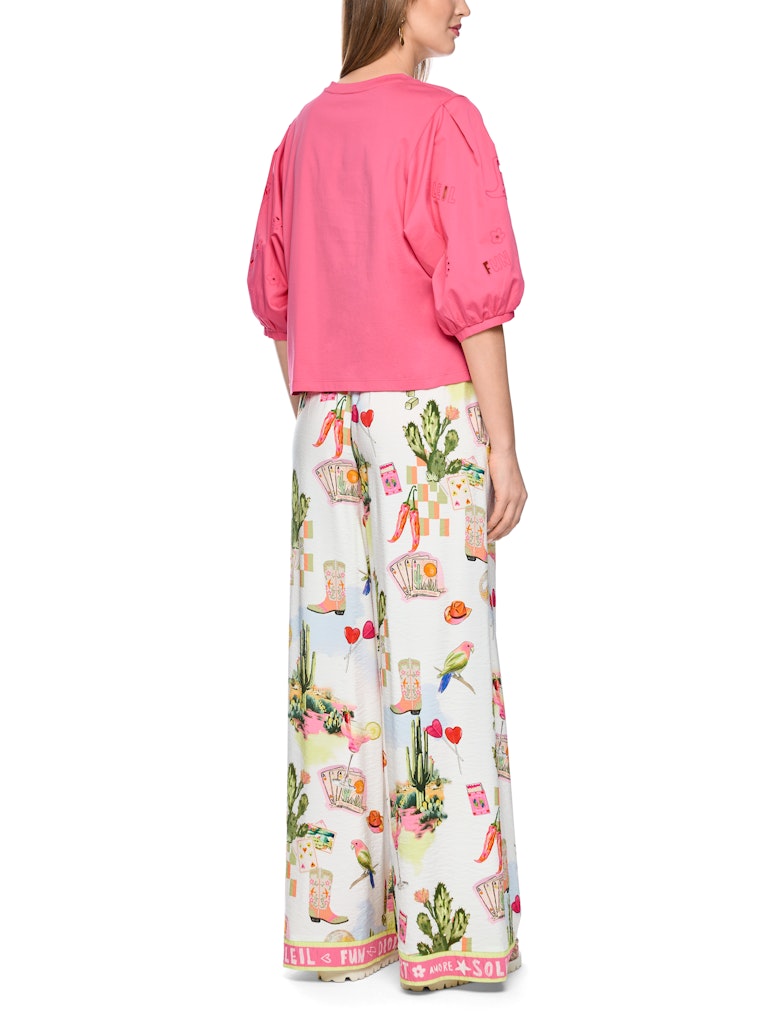 Shirt mit 3/4-Ballonärmeln|Das Shirt aus 100% Baumwolle zeigt sich mit Rundhalsausschnitt und 3/4-langen Ballonärmeln. Die Ärmel sind mit feiner Lochstickerei verziert und verleihen dem Shirt eine sommerlich-leichte Note. Bequem und figurfreundlich, lässt sich ideal zu Hosen oder Röcken kombinieren und passt zu casual sowie sommerlich-eleganten Looks.|Leger geschnitten|Ballonärmel mit Lochstickerei|Rundhalsausschnitt|Softer Griff|Das Model ist 179 cm groß und trägt N3/38.