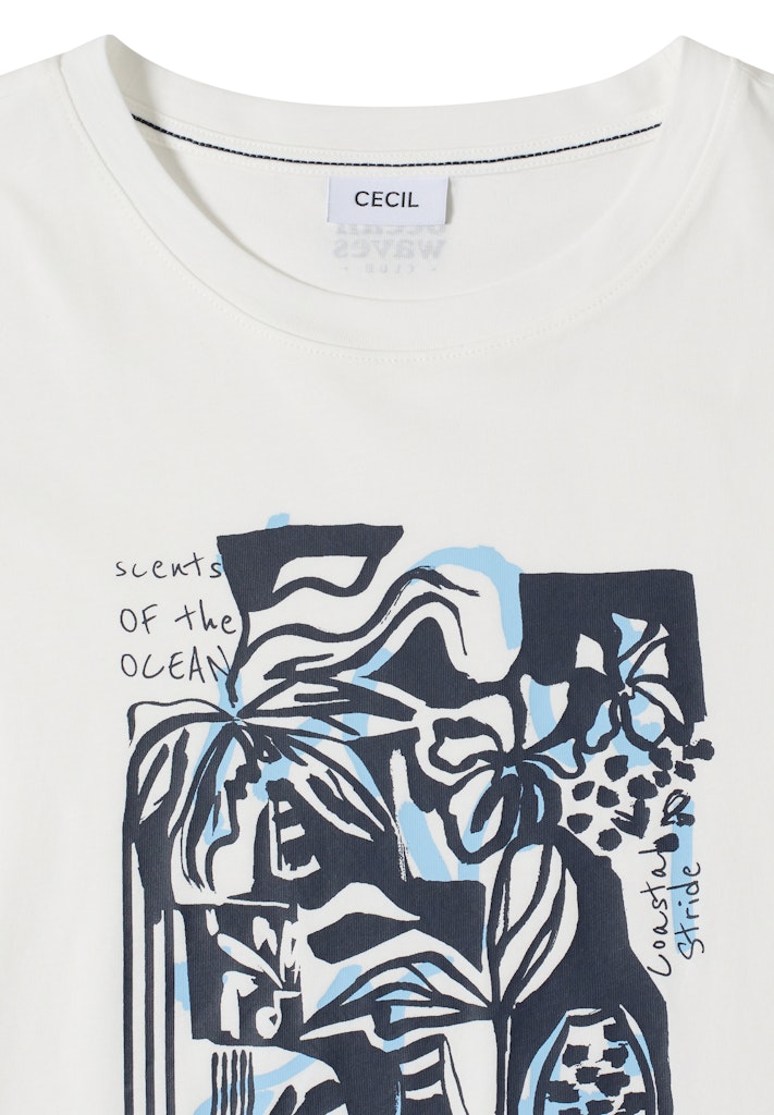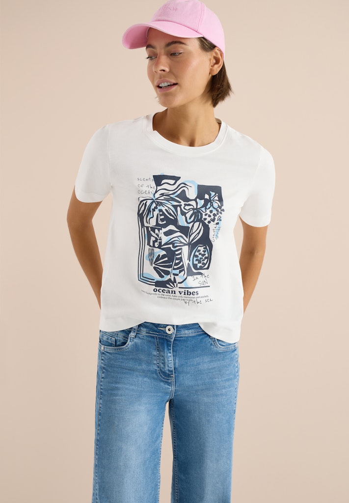 Dieses Jerseyshirt von CECIL für Damen überzeugt mit einem modernen, maritimen Print und vielseitigen Stylingmöglichkeiten. Der Rundhalsausschnitt und die kurzen Ärmel unterstreichen den lässigen Casual-Look. Die reine Baumwolle sorgt für ein angenehmes Tragegefühl. Perfekt für dich, wenn du ein leichtes Shirt suchst, das sich unkompliziert kombinieren lässt. Jerseyshirt Casual Rundhals Kurzarm Modern und vielseitig Material: 100% Baumwolle