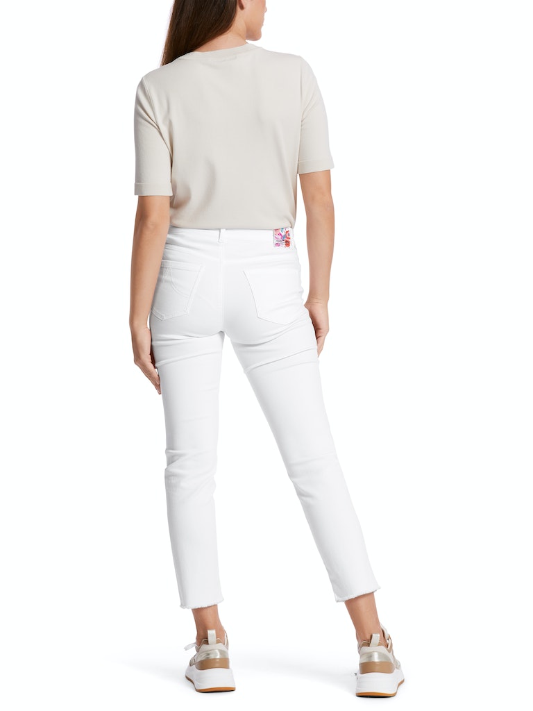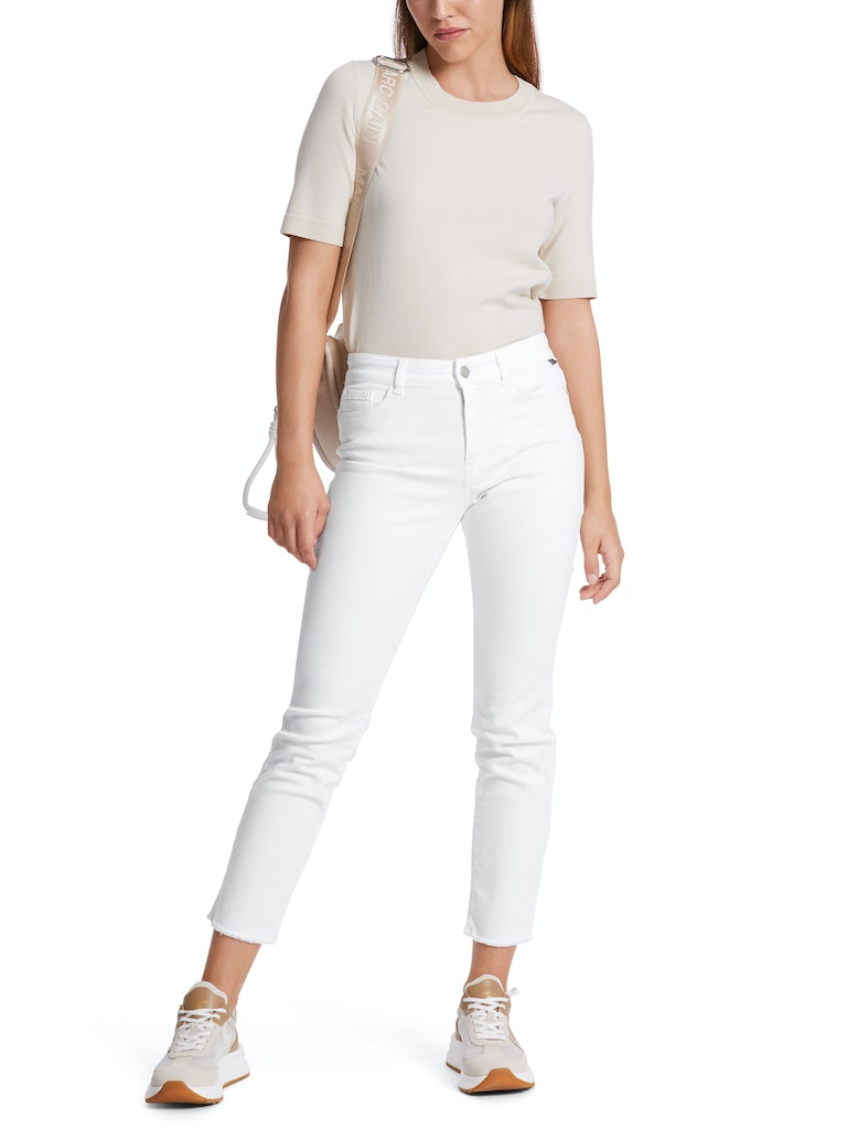 Slim Fit Modell SILEA "Rethink Together"|Im Slim Fit aus einem angenehmen Material-Mix mit Bio-Baumwolle gefertigt, tragen die Jeans SILEA das Nachhaltigkeitslabel "Rethink Together". Das 7/8-lange Bein präsentiert einen Fransensaum. Für denimtypische Details sorgen die betonten Steppnähte sowie die Metall-Nieten. Ergänzt wird der Look durch einen Zipp-Fly-Verschluss und das Five-Pocket-Design.|Bein in 7/8-Länge|Rethink Together|Ausgefranster Saum|SILEA - SLIM FIT - REGULAR - Beinlänge: 28"|Das Model ist 179 cm groß und trägt N3/38.
