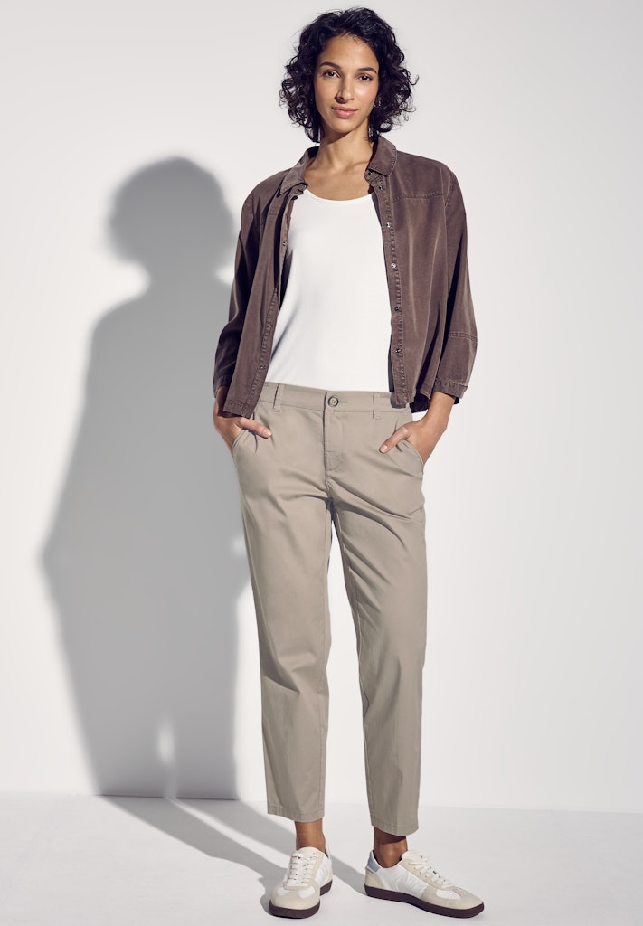 Diese softe Twill Chino im Casual Fit von Street One für Damen punktet mit ihrer weichen Haptik und angenehmem Tragekomfort. Gefertigt aus einem Baumwollmix mit Stretchanteil ist die Hose besonders bequem, während ein elastischer Bund für eine optimale Passform sorgt. Seitliche Taschen runden den Look ab und machen die Chino zum vielseitigen und lässigen Allrounder. Hose im Casual Fit Mid Waist und Slim Legs Seitliche Taschen Elastischer Bund hinten Baumwollmix mit Stretchanteil Material: 97% Baumwolle, 3% Elasthan