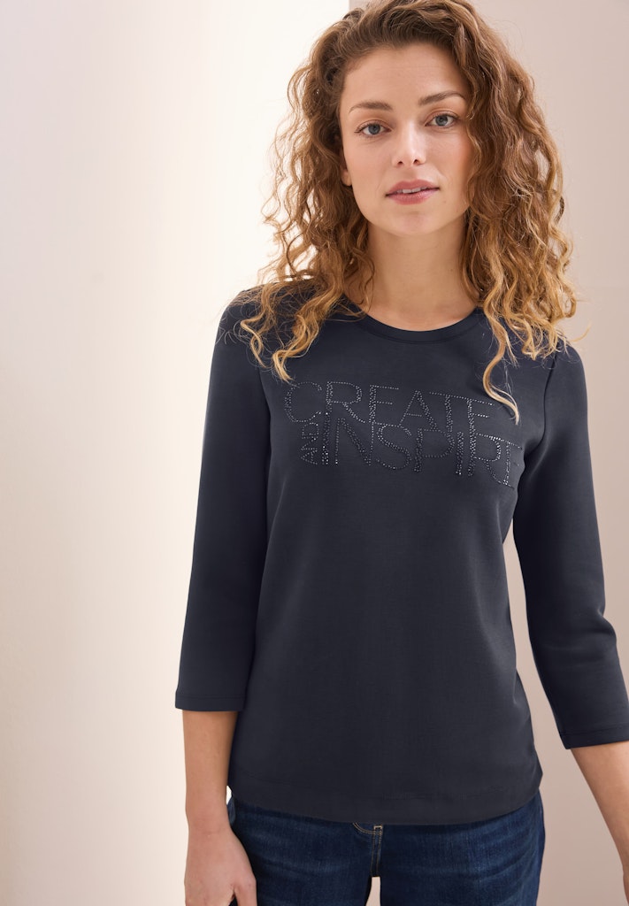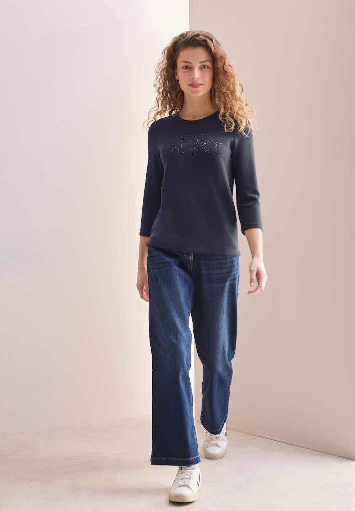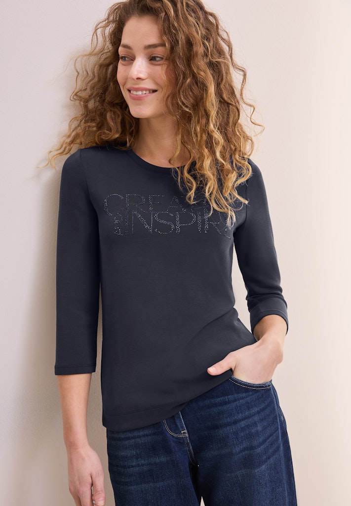 Dieses Shirt von CECIL für Damen ist aus einem Materialmix mit Stretchanteil gefertigt und überzeugt mit einem besonders weichen und bequemen Tragegefühl. Das Shirt hat 3/4-Ärmel und ist mit einem Schriftzug aus glitzernden Dekosteinen verziert. Ideal für lässige Looks. Damenshirt Rundhalsausschnitt 3/4-Arm Schriftzug mit glitzernden Dekosteinen Materialmix mit Stretchanteil Material: 49% Polyester, 44% Modal, 7% Elasthan