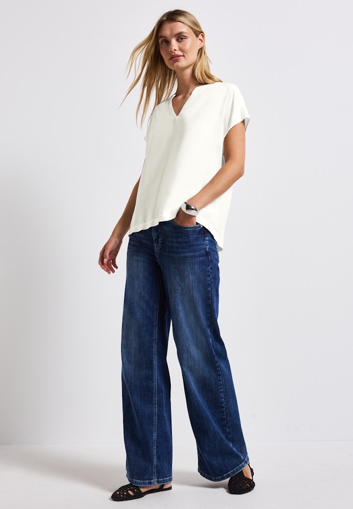 Diese Basic-Bluse von Street One für Damen wird mit ihrem lockeren Schnitt zu deinem Sommer-Favoriten. Der geschlitzte Ausschnitt und die Dropped Shoulders verleihen ihr eine feminine Note. Die weiche Viskose sorgt für ein besonders angenehmes Tragegefühl. Basic Bluse Geschlitzter Ausschnitt Dropped Shoulders Weiche Viskose null Material: 100% Viskose