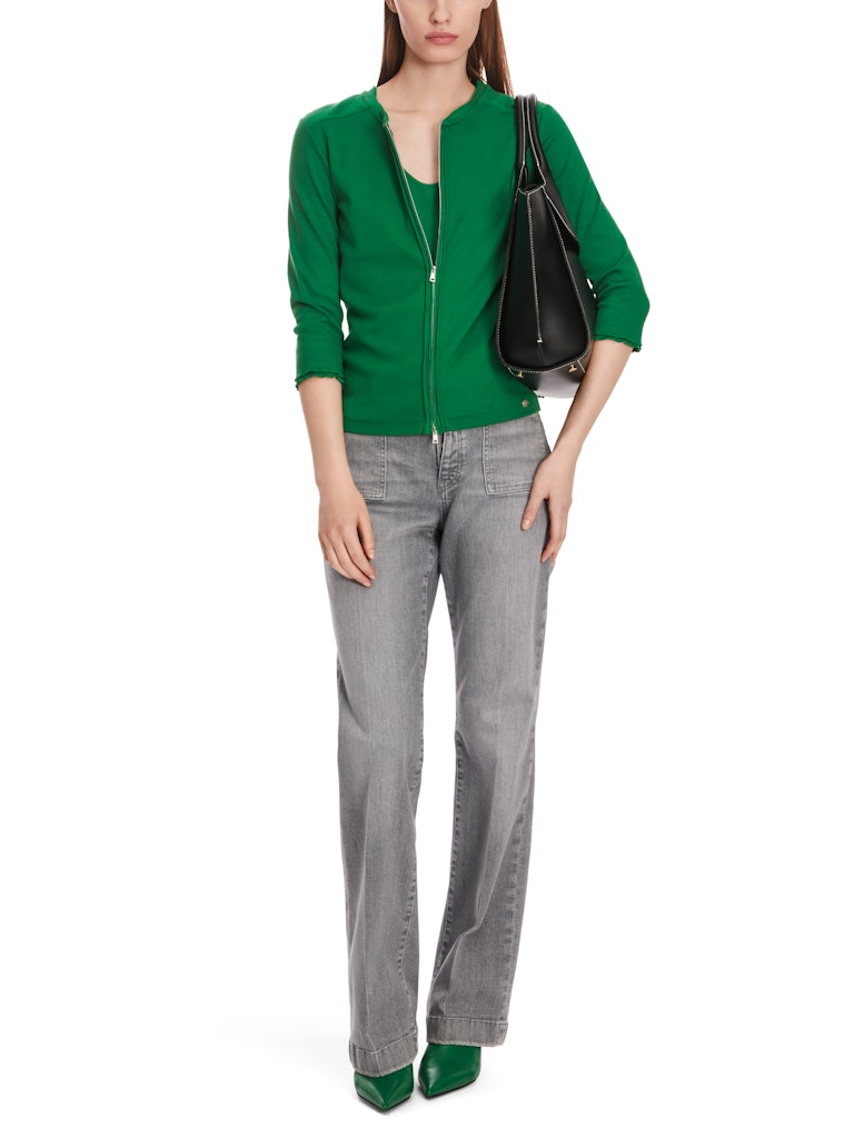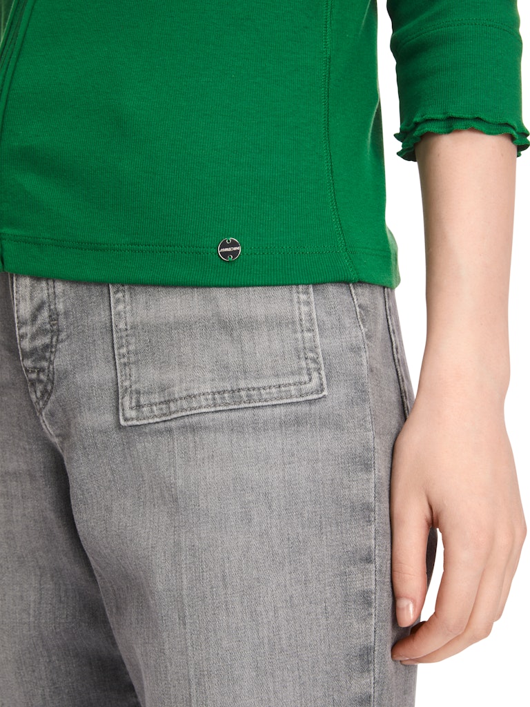 Sportive Jacke mit Rüschendetail|Sportiv zeigt sich diese Jacke aus Baumwolle mit Elasthananteil. Sie kommt in figurnaher Silhouette. Ein Zweiwege-Reißverschluss unterstreicht den legeren Charakter. Die dreiviertellangen Ärmel sowie der Rundhalsausschnitt sind mit Rüschen verziert.|Figurnaher Schnitt|Kontrastfarbene Knöpfe|Made in Europe|Mit Zweiwege-Reißverschluss|Das Model ist 179 cm groß und trägt N3/38.