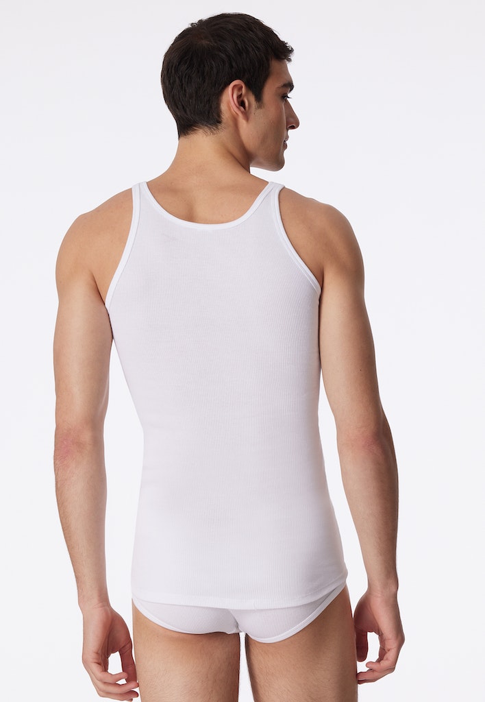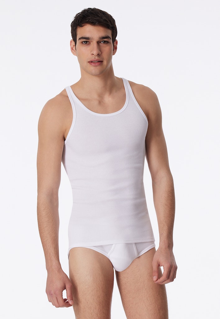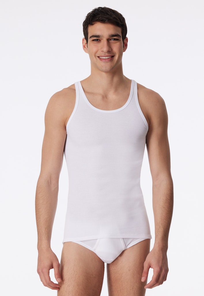 In seinem klassischen Look ist dieses weiße Herren-Unterhemd seit jeher nicht mehr aus der Wäsche-Schublade wegzudenken! Dafür sorgt nicht nur der vorteilhafte Schnitt mit einer etwas längeren Rückenpartie, sondern vor allem 100 % feinste zweifädige Baumwolle, die sich in bewährter Doppelripp-Verarbeitung angenehm weich auf der Haut anfühlt. Ein komfortabler Klassiker, der selbst nach der 95-Grad-Wäsche immer noch durch beste SCHIESSER Qualität überzeugt!