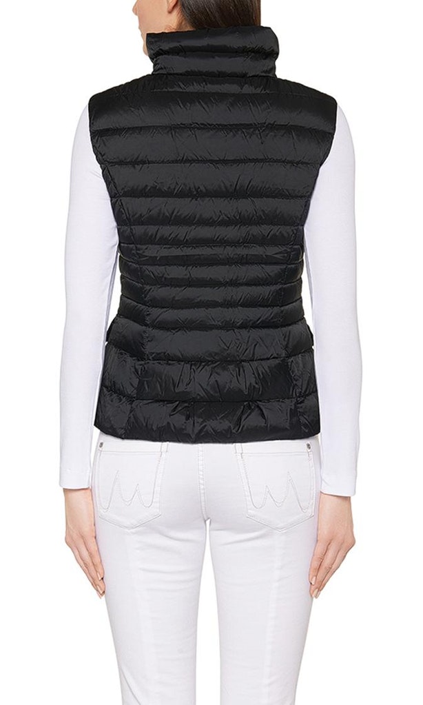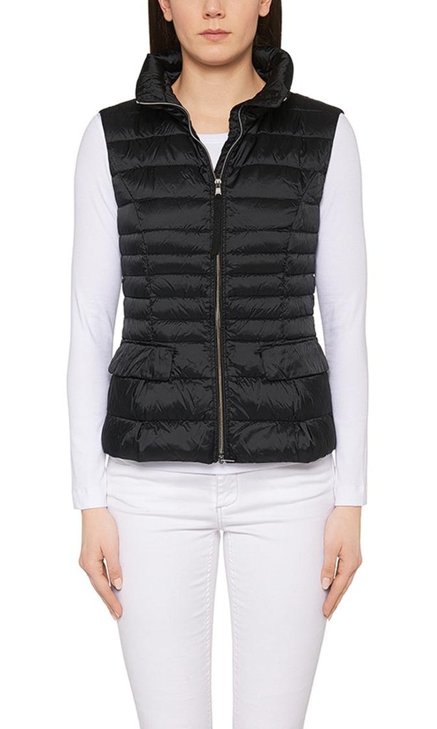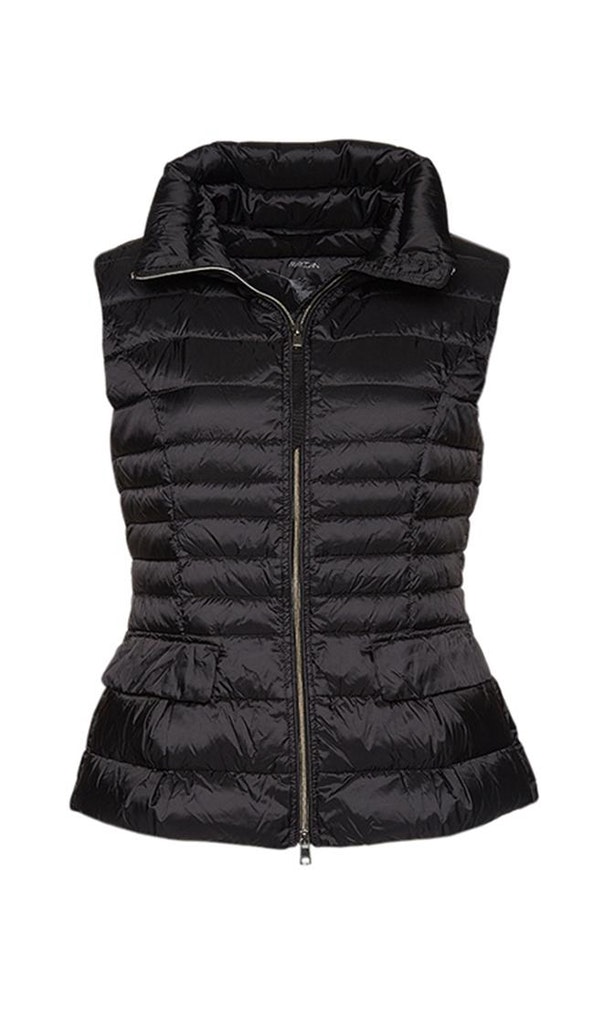 Steppweste mit Daunenfutter|Die dekorativ abgesteppte Weste mit hohem Stehkragen ist mit wärmenden Daunen gefüttert. Ein schimmernder Frontzipper und zwei Pattentaschen mit Druckknöpfen vollenden den hochwertigen Freizeit-Style. Für eine tolle Passform sorgt die schön taillierte Silhouette.|Farbe: midnight blue|Superleichte Kunstfaser mit dezentem Glanz|Effektvolle Allover-Steppungen, formgebende Wienernähte beidseitig|Das Model ist 179 cm groß und trägt N3/38.|Zwei Pattentaschen zum Knöpfen vorne