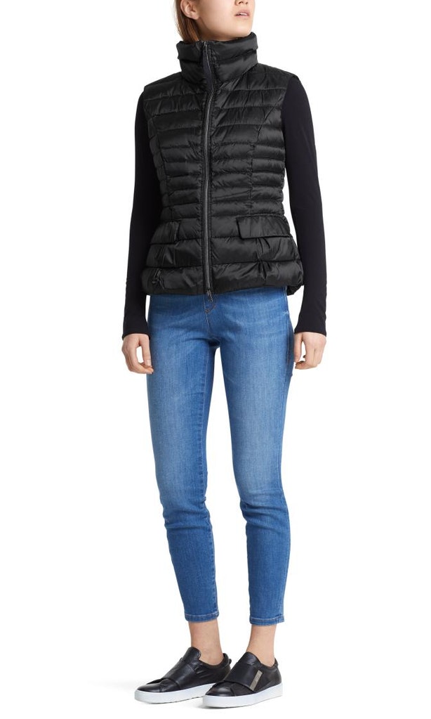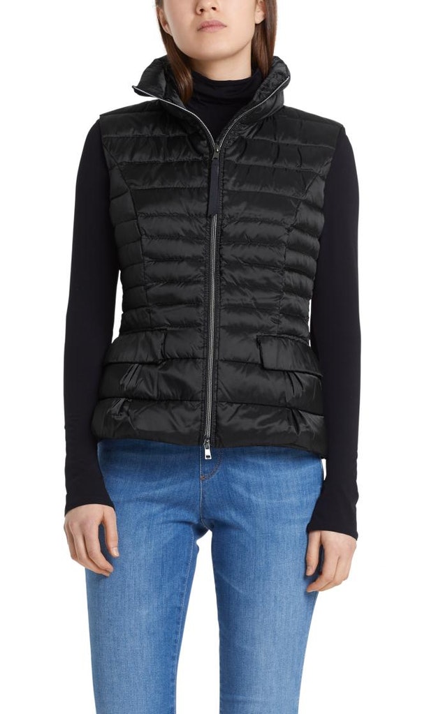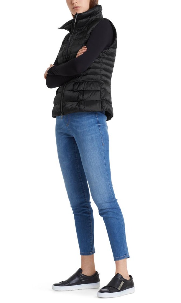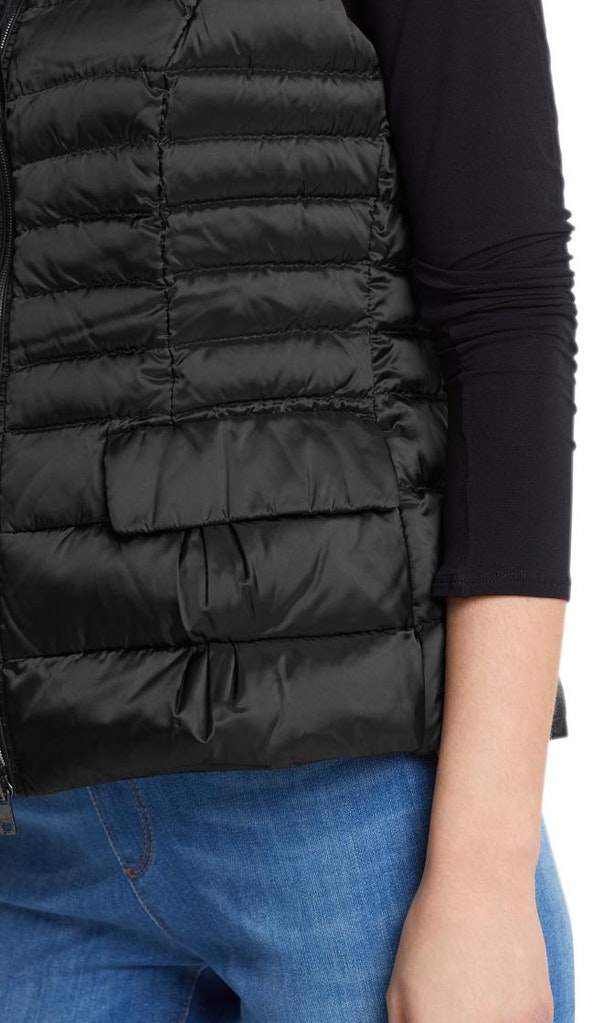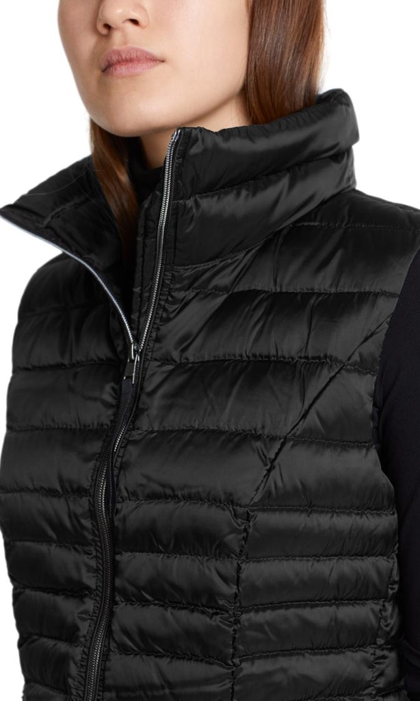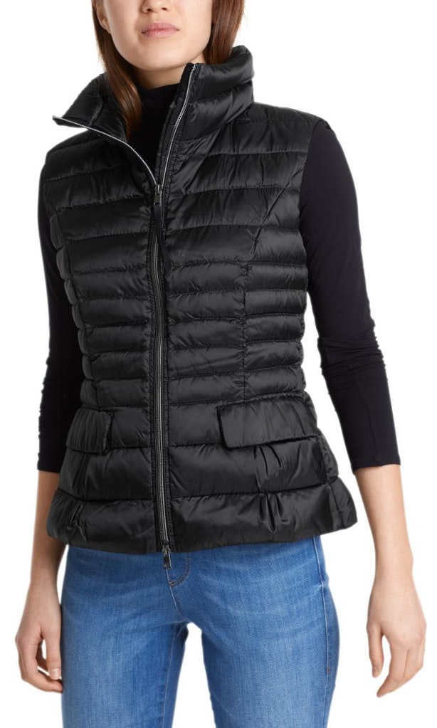 Steppweste mit Daunenfutter|Die dekorativ abgesteppte Weste mit hohem Stehkragen ist mit wärmenden Daunen gefüttert. Ein schimmernder Frontzipper und zwei Pattentaschen mit Druckknöpfen vollenden den hochwertigen Freizeit-Style. Für eine tolle Passform sorgt die schön taillierte Silhouette.|Farbe: midnight blue|Superleichte Kunstfaser mit dezentem Glanz|Effektvolle Allover-Steppungen, formgebende Wienernähte beidseitig|Das Model ist 179 cm groß und trägt N3/38.|Zwei Pattentaschen zum Knöpfen vorne