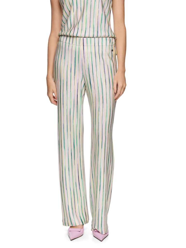Streifenhose FASTIV Knitted in Germany|Die Hose FASTIV verbindet feminine Passform mit Regular Waist und elastischem Bund für optimalen Komfort. Aus Viskose, Bio-Baumwolle und schimmerndem Lurexgarn gefertigt, besticht sie durch leichten Glanz. Das mehrfarbige Streifenmuster verleiht einen frischen, modernen Look. Das Modell ist "Knitted in Germany": Das Verstricken der Garne auf hochmodernen Strickmaschinen und die Veredelung der Stoffe geschehen am Standort Deutschland.|Femininer Schnitt|Knitted in Germany|Gummibund|FASTIV - FEMININE FIT - REGULAR - Beinlänge: 32""|Das Model ist 179 cm groß und trägt N3/38.
