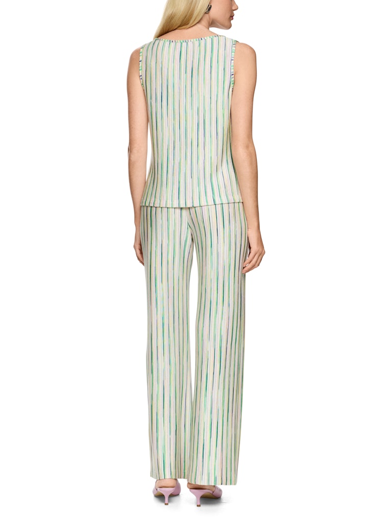 Streifentop Knitted in Germany|Elegantes Feinstricktop aus weichem Viskosemix mit zartem Lurexgarn für einen edlen Schimmer. Der V-Ausschnitt und die leicht taillierte Form betonen feminin die Silhouette. Seitenschlitze sorgen für angenehme Bewegungsfreiheit. Das ärmellose, mehrfarbige Top lässt sich vielseitig kombinieren. Das Modell ist "Knitted in Germany": Das Verstricken der Garne auf hochmodernen Strickmaschinen und die Veredelung der Stoffe geschehen am Standort Deutschland.|Leicht tailliert|Knitted in Germany|Ärmellos|Mit V-Ausschnitt|Das Model ist 179 cm groß und trägt N3/38.