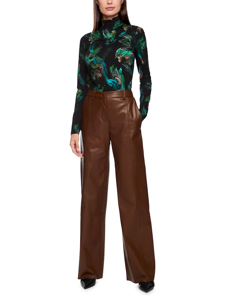 Stretch-Shirt mit Federn-Print|Figurnah geschnittenes, leichtes Shirt aus stretchigem Material mit langem Arm und hohem Stehkragen. Der mystisch anmutende Federn-Print verleiht dem Look eine besondere Ausstrahlung. Perfekt auch als Unterzieher unter Pullover oder Strickjacke.|Schmal geschnitten|Lange Ärmel|Stehkragen|Logo-Anhänger|Das Model ist 179 cm groß und trägt N3/38.