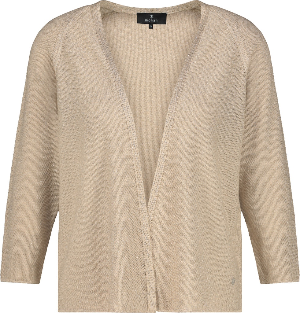 Diese Strickjacke besticht durch ihr elegantes Reiskornmuster und die glitzernden Lurexfäden. Mit ¾-Raglanärmeln und ohne Verschluss.