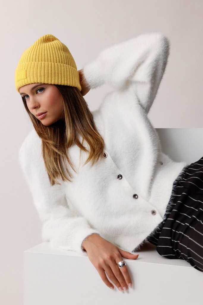 Die flauschige Strickjacke aus einer weichen Baumwollmischung bietet ein angenehmes Tragegefühl. Die gerippten Ärmel- und Taillenbündchen sorgen für einen perfekten Sitz.