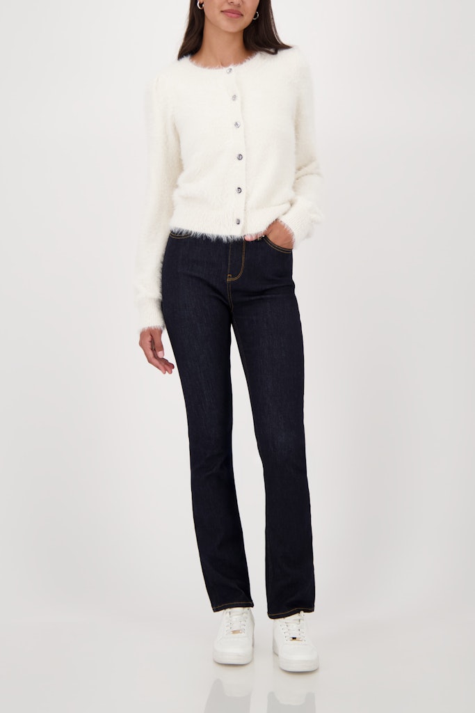Die flauschige Strickjacke aus einer weichen Baumwollmischung bietet ein angenehmes Tragegefühl. Die gerippten Ärmel- und Taillenbündchen sorgen für einen perfekten Sitz.