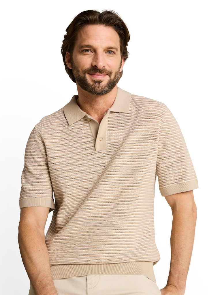 Strukturiertes Strick-Poloshirt mit Kragen und halber Knopfleiste. Mit Rippbündchen am Saum und Ärmel.