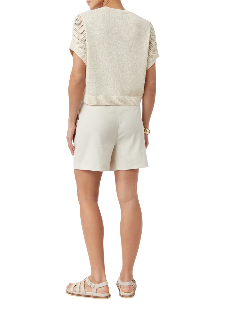 Luftig-leichter Sommerstyle: Der kurzärmelige Loose-Fit-Pullover aus Ajourstrick vereint Komfort und Trend. Das weiche Baumwollmix-Material sorgt für angenehmes Tragegefühl, während der Crop-Schnitt und überschnittene Schultern moderne Akzente setzen. Kombinieren Sie ihn mit High-Waist-Jeans für einen legeren Look oder mit einem Bleistiftrock für einen Office-tauglichen Outfit-Mix. Der Rundhalsausschnitt mit Rippblende verleiht dem Strickpullover eine raffinierte Note.