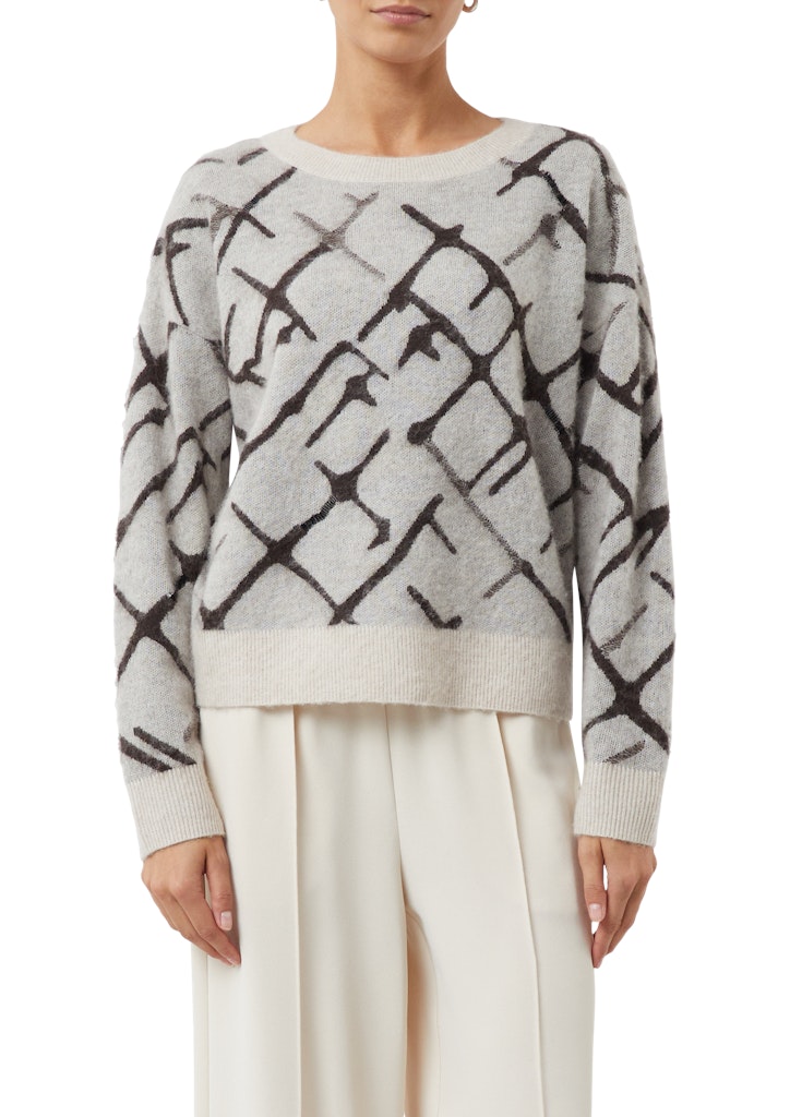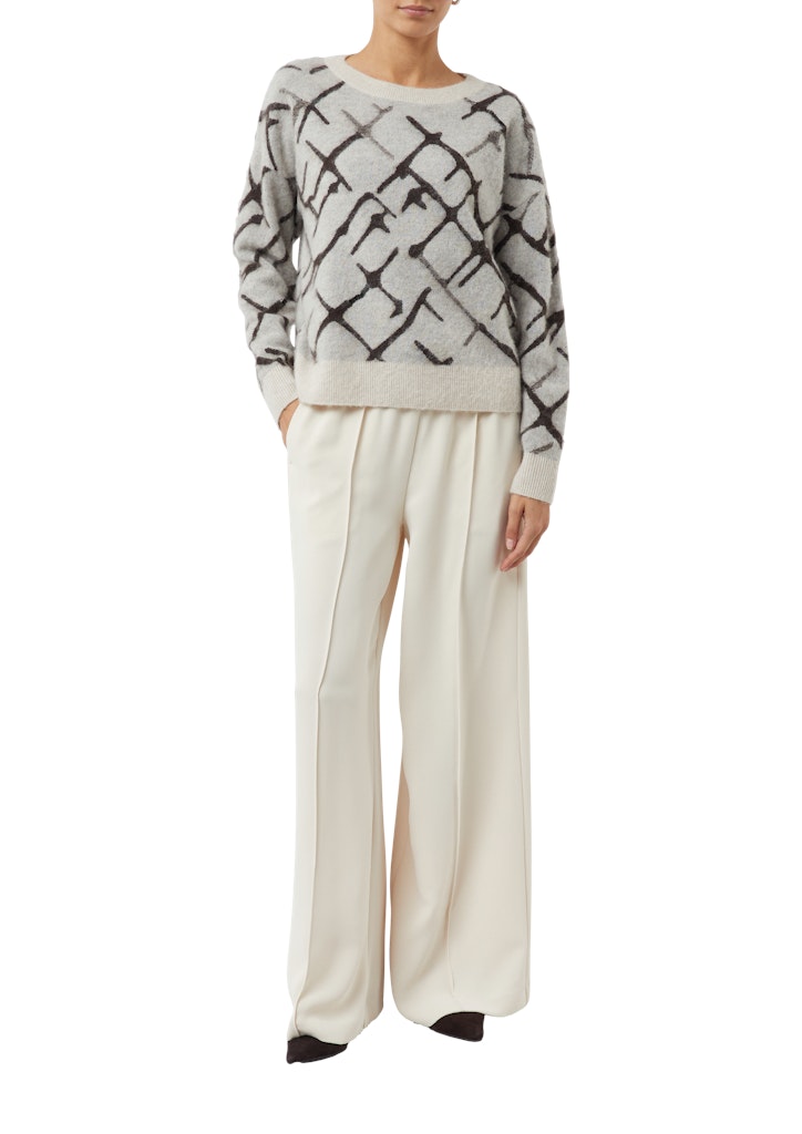 Strickpullover aus gebürstetem Garn mit platzierter Stickerei