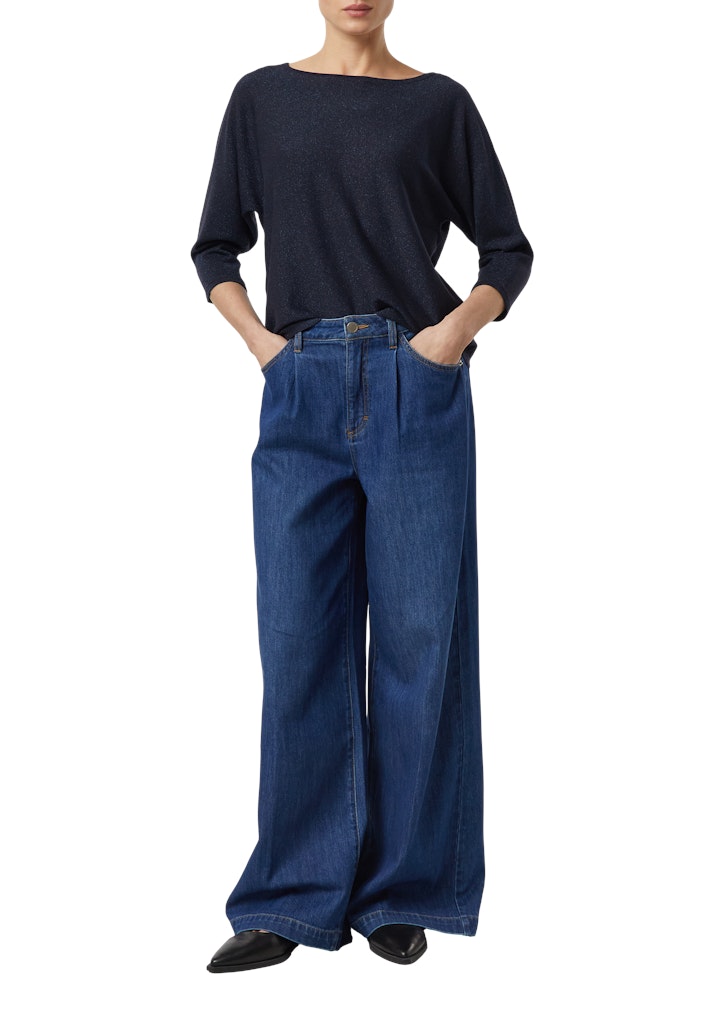 Allover-Plated-Pullover mit Glitzergarn und 3/4-Ärmeln