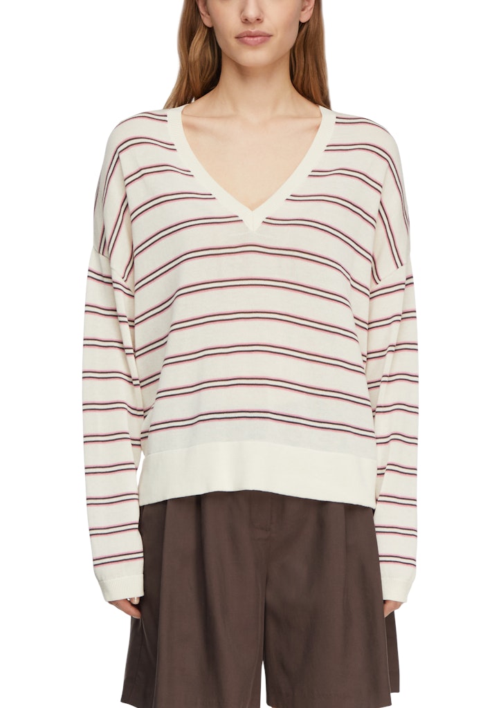 Gestreifter Feinstrickpullover aus Lyocell-Baumwoll-Mix mit Relaxed Fit