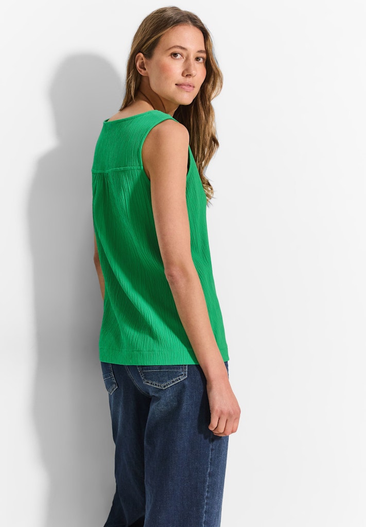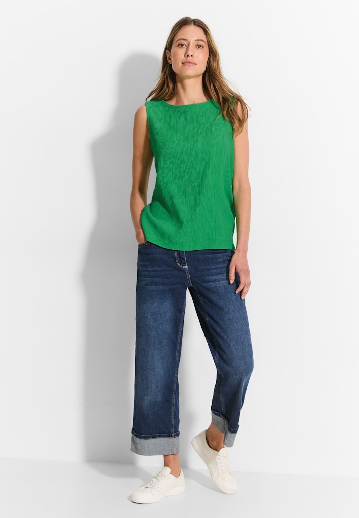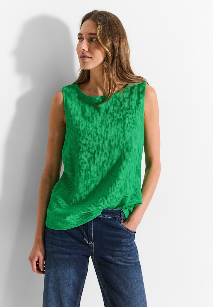 Das ärmellose Struktur Blusentop von CECIL für Damen ist eine stilvolle Wahl für jeden Tag. Mit seinem klassischen Rundhalsausschnitt und der Crash Seersucker Qualität bringt es Textur in deine Garderobe. Die seitlichen Schlitze im Saum sorgen für Bewegungsfreiheit, während die pflegeleichten und bügelfreien Eigenschaften dieses Tops es zu einem praktischen Favoriten machen.