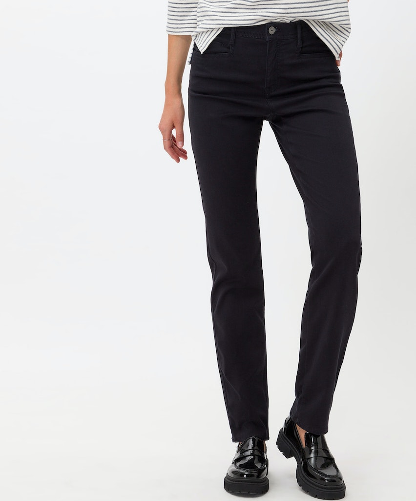 Für Damen, die klassisch und smart gekleidet sein möchten und hohen Wert auf Qualität legen. Eine alltagstaugliche Hose, mit der Sie sich zeigen können: Der Style Carola in softer Winter Emotion-Qualität ist eine Five-Pocket-Hose für modebewusste Damen. Vor allem das Zusammenspiel von Winter Emotion und dem ansprechenden Design ergeben die wertige Optik dieser Five-Pocket. Für die sehr guten Trageeigenschaften dieser Five-Pocket-Hose in Feminine Fit mit geradem Bein für Damen ist der elastische Lyocellmix verantwortlich. Dieses neue Lieblingsteil punktet mit geschmirgelter Oberfläche und anspruchsvoller Detailverarbeitung. Vervollständigen den Look: das weiche Warenbild und die vielseitige Farbpalette.Form: