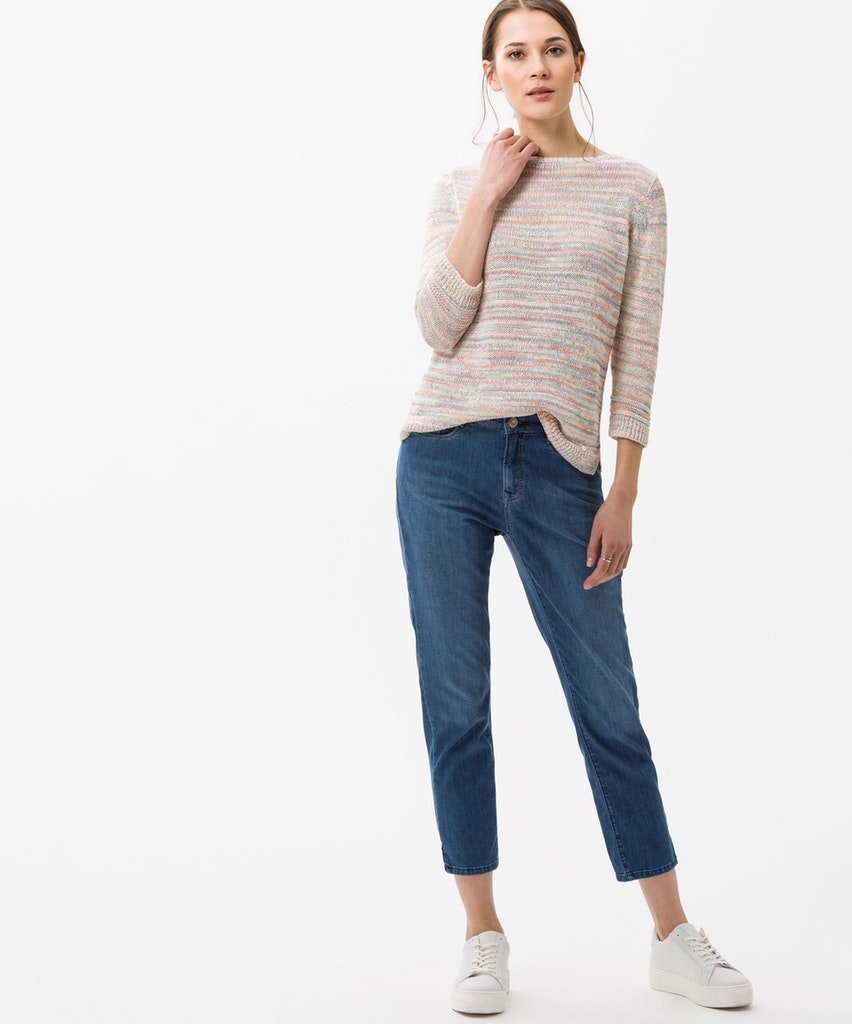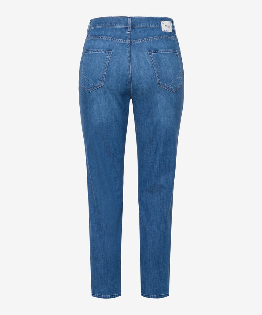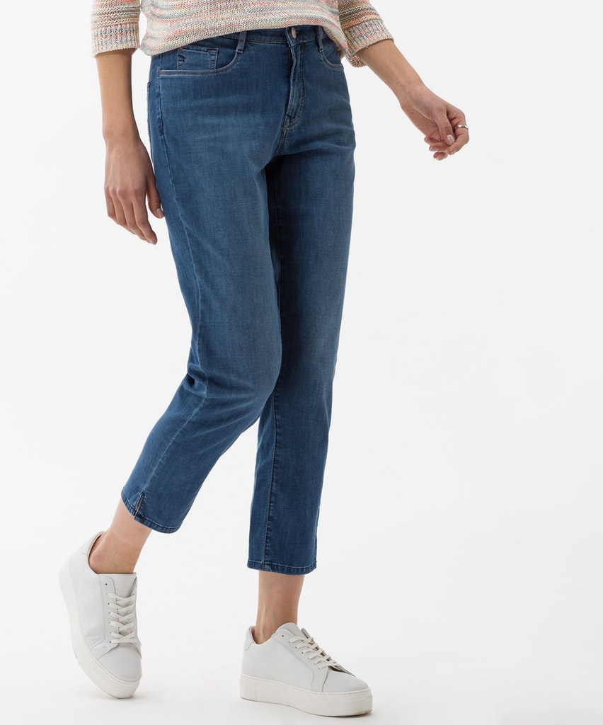 Eine zeitgemäße Sommerjeans, die ihren Titel verdient. Mit dem exklusiven Ultralight-Denim hat sich BRAX das Ziel gesetzt, die leichteste Jeans zu entwickeln, ohne auf einen authentischen Look und exzellentes Handfeel zu verzichten. Mit nur 6,75 oz ist diese moderne Damenjeans ein absolutes Leichtgewicht und bereitet Ihnen so ein sommerliches Jeans-Vergnügen. Für ein rundum perfektes Tragegefühl sorgt bei dieser modernen Damenjeans neben der superleichten Denim-Qualität in dezenter Used-Optik auch die verkürzte Silhouette. Dekorative Hotfix-Elemente auf den Gesäßtaschen und kleine Saumschlitze runden die Sommerjeans mit femininen Touch ab.Form: