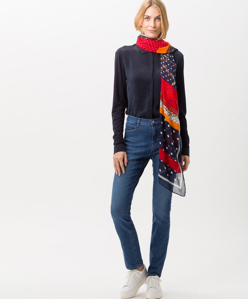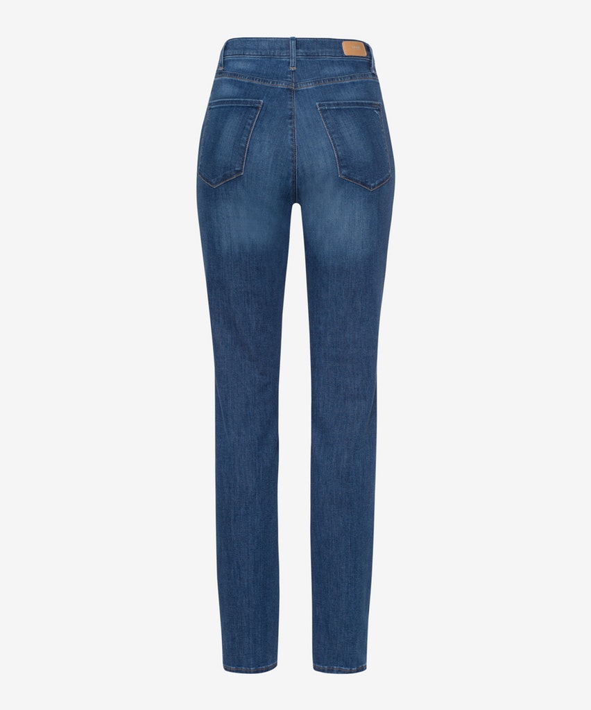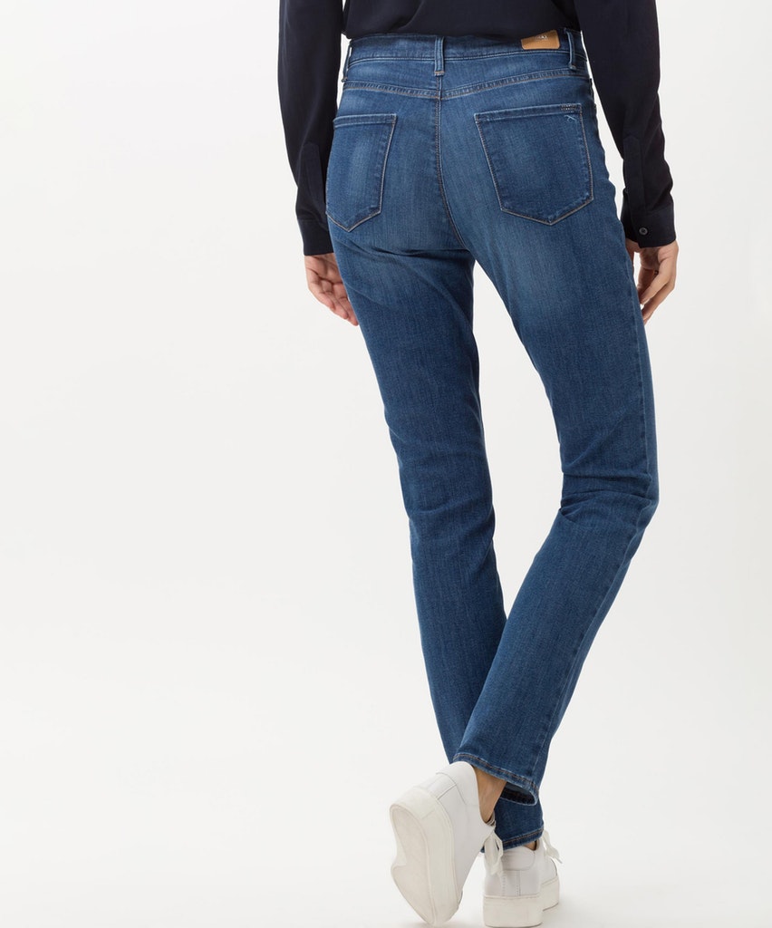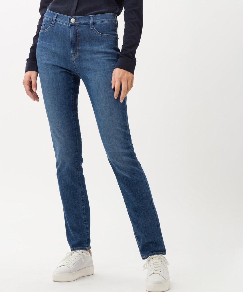 Weniger Wasser, Energie und Chemikalien, aber nicht weniger Denim. BRAX greift das Thema Nachhaltigkeit mit "Blue Planet" auf. Dieses Denim-Programm verbindet den bewussten Umgang mit natürlichen Ressourcen mit dem Anspruch an zeitgemäßer Mode. Durch die Verwendung umweltschonender Technologien, Waschverfahren mit Ozon sowie dem Einsatz modernster Lasertechnologie wird bei der Herstellung dieses exklusiven Denimartikels der Verbrauch von Wasser, chemischen Hilfsmitteln und Energie deutlich reduziert. So entsteht eine Damenjeans mit bewährter Passform, wertiger Ausstattung, wie den glänzenden Hotfix-Elementen auf der Gesäßtasche, und moderner Optik, die auch noch nachhaltig ist. Ein gutes Gefühl.Form: