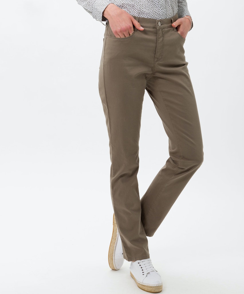Immer wieder gern. Auf die Hosen in bewährter Cotton-Satin-Qualität ist einfach Verlass. Ein leichter Baumwollstretch mit softer Haptik, natürlich und edel in der Farbbrillanz - das sind die besonderen Merkmale dieser gepflegten Five-Pocket-Hose im Style Mary. Besonderen Wert wird neben den modifizierten Verarbeitungsdetails auf eine perfekte Passform und besten Tragekomfort gelegt. Und auch die ansprechende Farbpalette passt. Schon ganz frühjahrstauglich präsentiert sich die Damenhose und lässt sich zu neuen, frischen Outfits mühelos kombinieren.Form:
