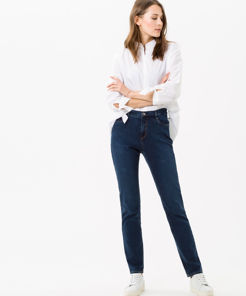 Weniger Wasser, Energie und Chemikalien, aber nicht weniger Denim. BRAX greift das Thema Nachhaltigkeit mit "Blue Planet" auf. Dieses Denim-Programm verbindet den bewussten Umgang mit natürlichen Ressourcen mit dem Anspruch an zeitgemäßer Mode. Durch die Verwendung umweltschonender Technologien, Waschverfahren mit Ozon sowie dem Einsatz modernster Lasertechnologie wird bei der Herstellung dieses exklusiven Denimartikels der Verbrauch von Wasser, chemischen Hilfsmitteln und Energie deutlich reduziert. So entsteht eine Damenjeans mit bewährter Passform, wertiger Ausstattung und moderner Optik, die auch noch nachhaltig ist. Ein gutes Gefühl. Form: