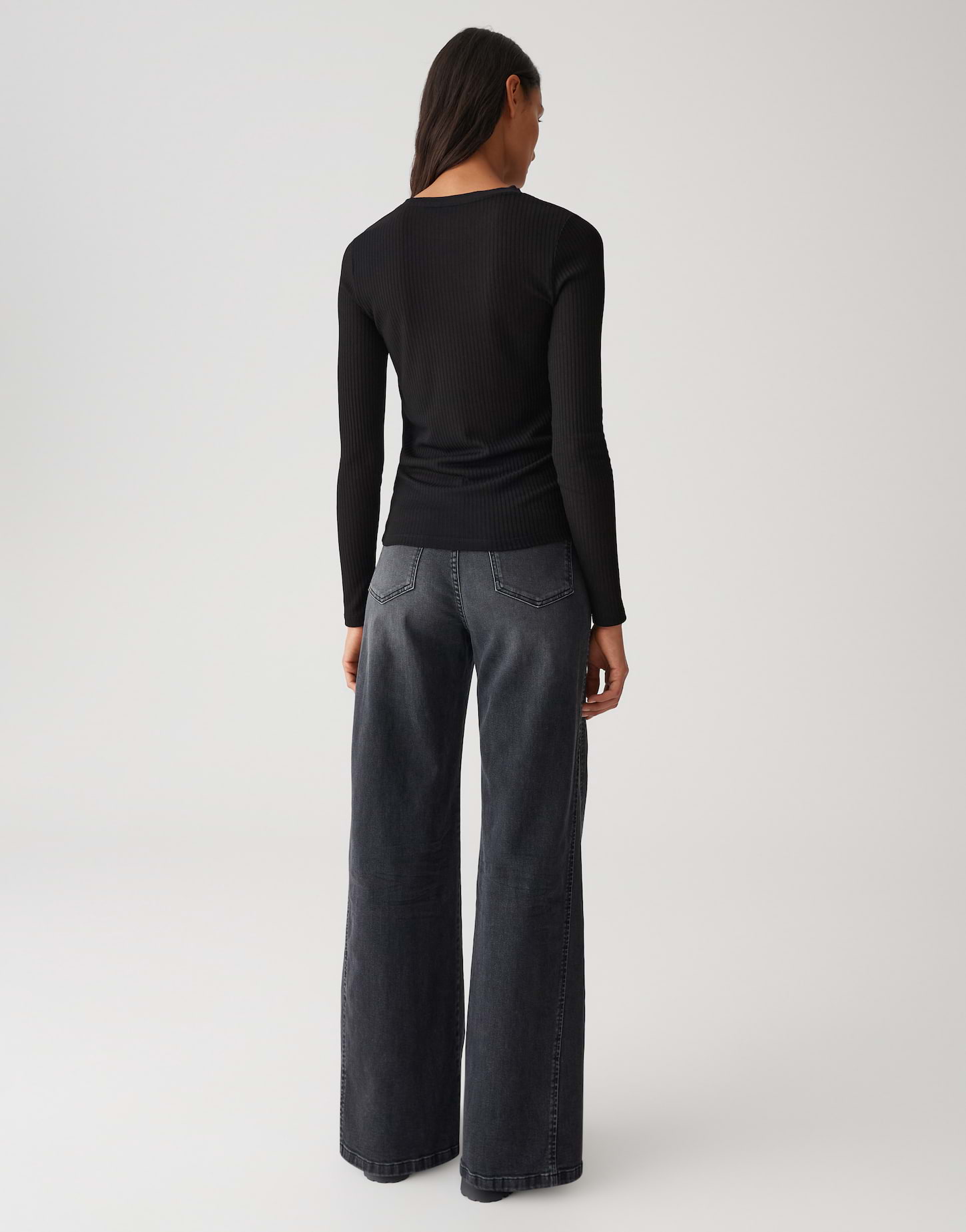 schmale Passform, figurbetont geschnitten, Langarm, hoher Rundhalsausschnitt, Rückenlänge ca. 59 cm bei Größe 36, Model Größe 178 cm - trägt Größe 36, Jersey, Rippstruktur, weicher Griff, elastischer Stoff