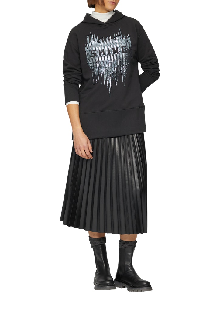 Lust auf lässigen Komfort mit femininem Twist? Unser Relaxed-Fit-Hoodie vereint Statement-Print und zarte Spitze zu einem stylischen Allrounder. Der leicht elastische Baumwollmix schmiegt sich angenehm an, während der seitlich geschlitzte Saum für Bewegungsfreiheit sorgt. Perfekt für gemütliche Herbsttage oder coole Streetstyle-Looks - wie trägst du deinen neuen Lieblingshoodie?