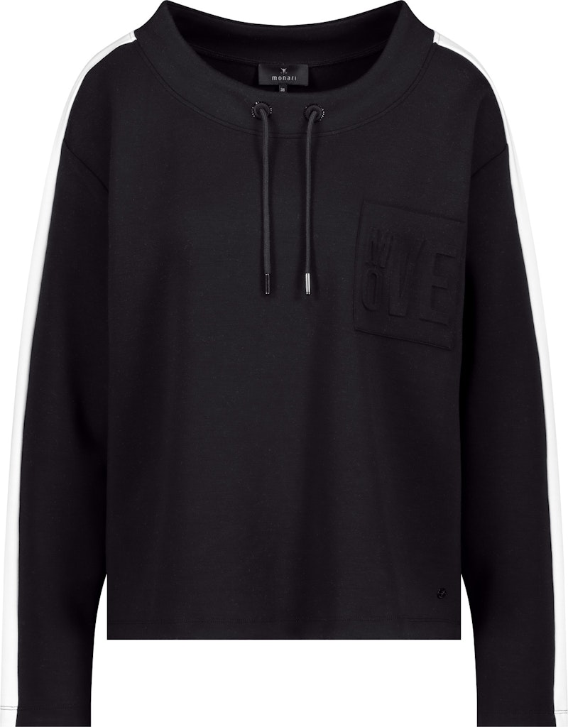 Elegantes Langarm-Sweatshirt aus elastischem Modal mit 3D-Details, Streifenärmel und glitzerndem Stehkragen für einen stilvollen Auftritt.