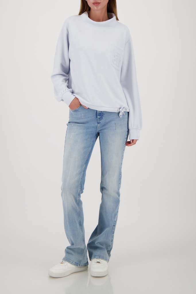 Dieses einzigartige Sweatshirt besticht durch seinen auffälligen 3D-Druck auf der Brusttasche und den eleganten Schmuck am Stehkragen.