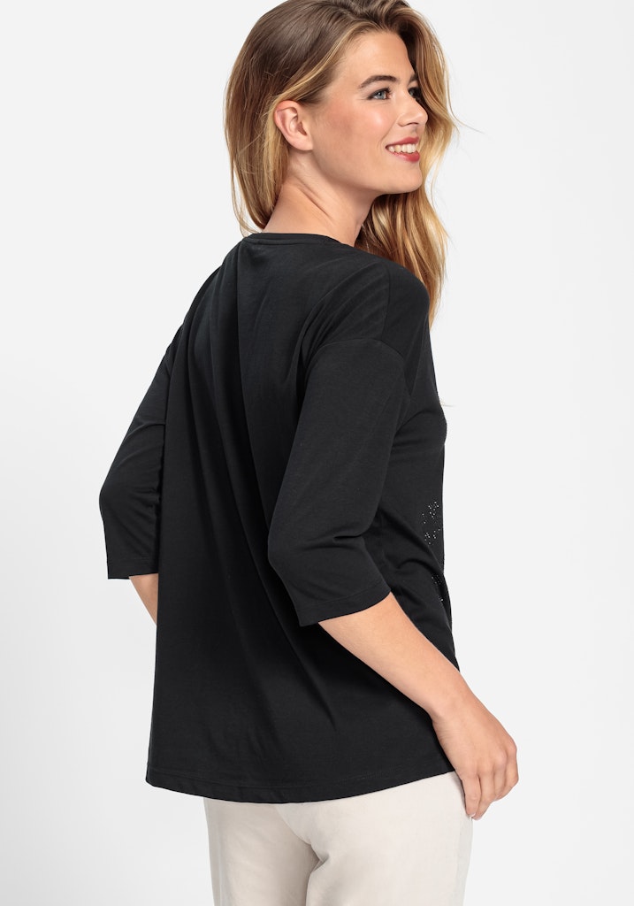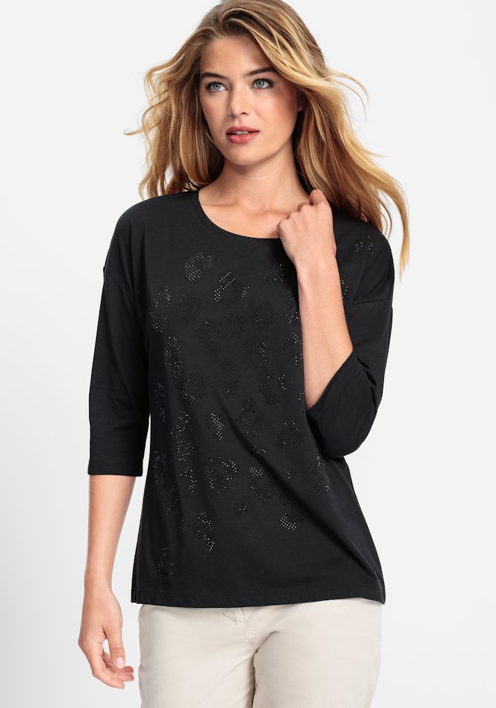 Charme-Offensive: Das lässig geschnittene Kurzarm-Shirt setzt mit dezenten Glitzer-Details auf der Vorderseite festliche Akzente. Der hochwertige Mix aus Baumwolle und Polyester sorgt für angenehmen Komfort. Ob casual oder klassisch kombiniert: das Shirt verleiht jedem Look einen garantiert glamourösen Twist.