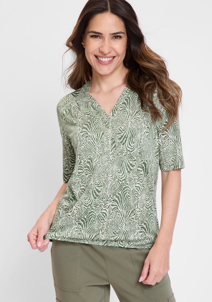 Etwas weiter geschnitten in der Olsen-Passform Clara, mit V-Ausschnitt und Gummizug am Saum, mit verlängertem Kurzarm