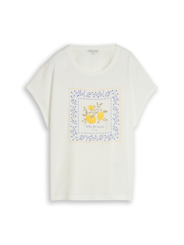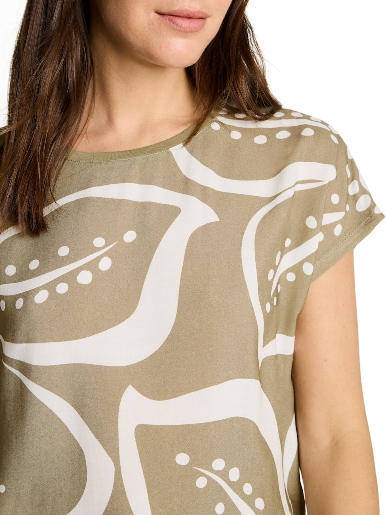 T-Shirt mit Print und kurzen Seitenschlitzen. Im Material-Mix mit gewebtem Stoff vorne und Jersey hinten.