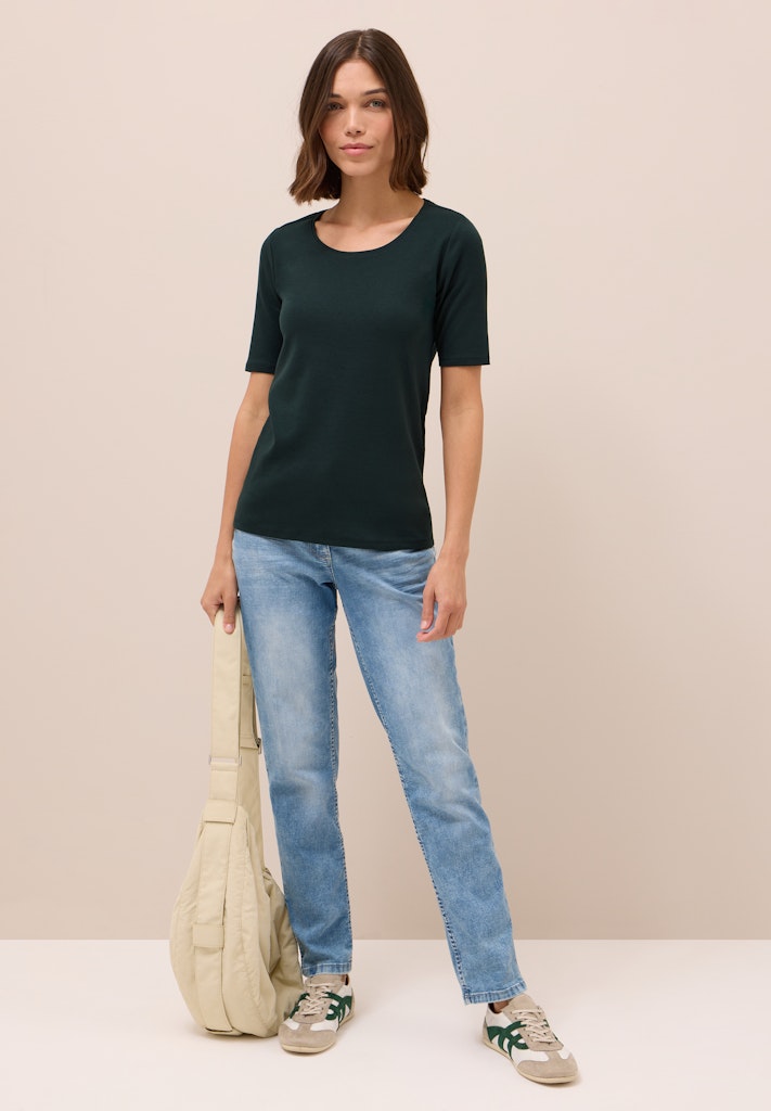 Basic Power! Feminines Damen T-Shirt im Style Lena von CECIL. Es zeigt sich mit Rundhalsausschnitt und in frischer Unifarbe. Ein neues Basic-Oberteil, das sich toll zum Kombinieren eignet. T-Shirt Rundhalsausschnitt Unifarbe Material: 100% Baumwolle