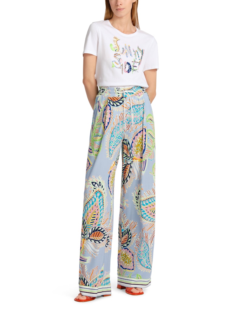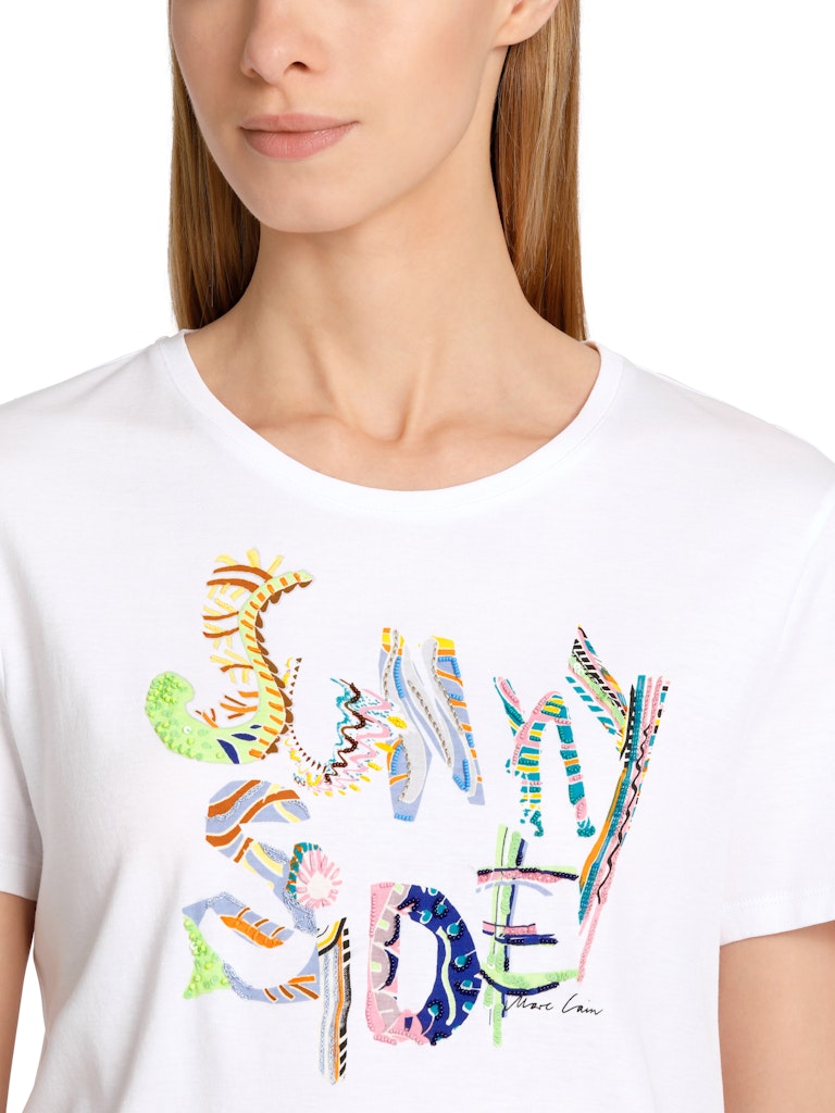 T-Shirt mit Print, Perlen und Pailletten|Locker geschnittenes T-Shirt aus reiner Baumwolle. Blickfang ist der farbenfrohe Print, der mit Perlen, Pailletten und Garnen bestickt ist.|Gerade Form|Locker geschnitten|Rundhals|Print & Applikationen|Das Model ist 179 cm groß und trägt N3/38.